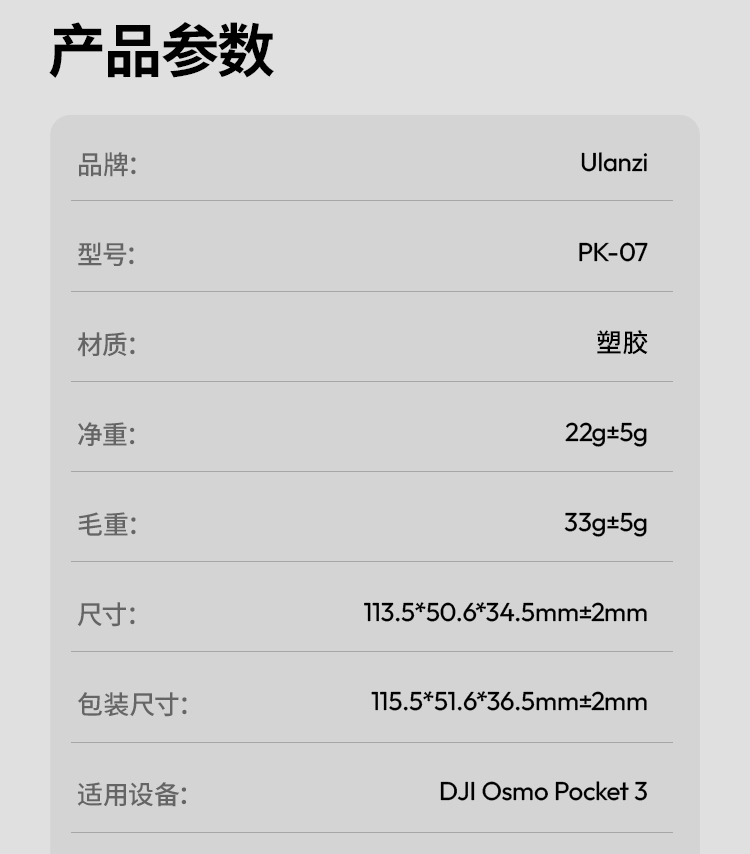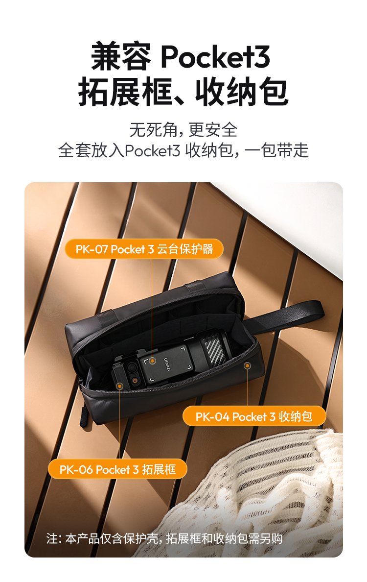 Ulanzi优篮子PK07适用DJI大疆Pocket3保护壳镜头盖云台相机保护罩OSMO灵眸相机保护套屏幕防摔防刮支架配件