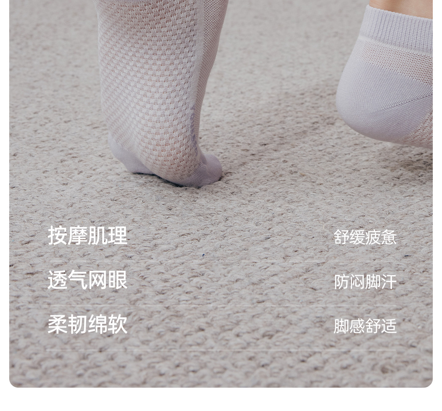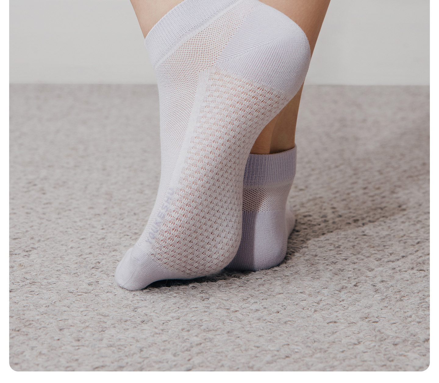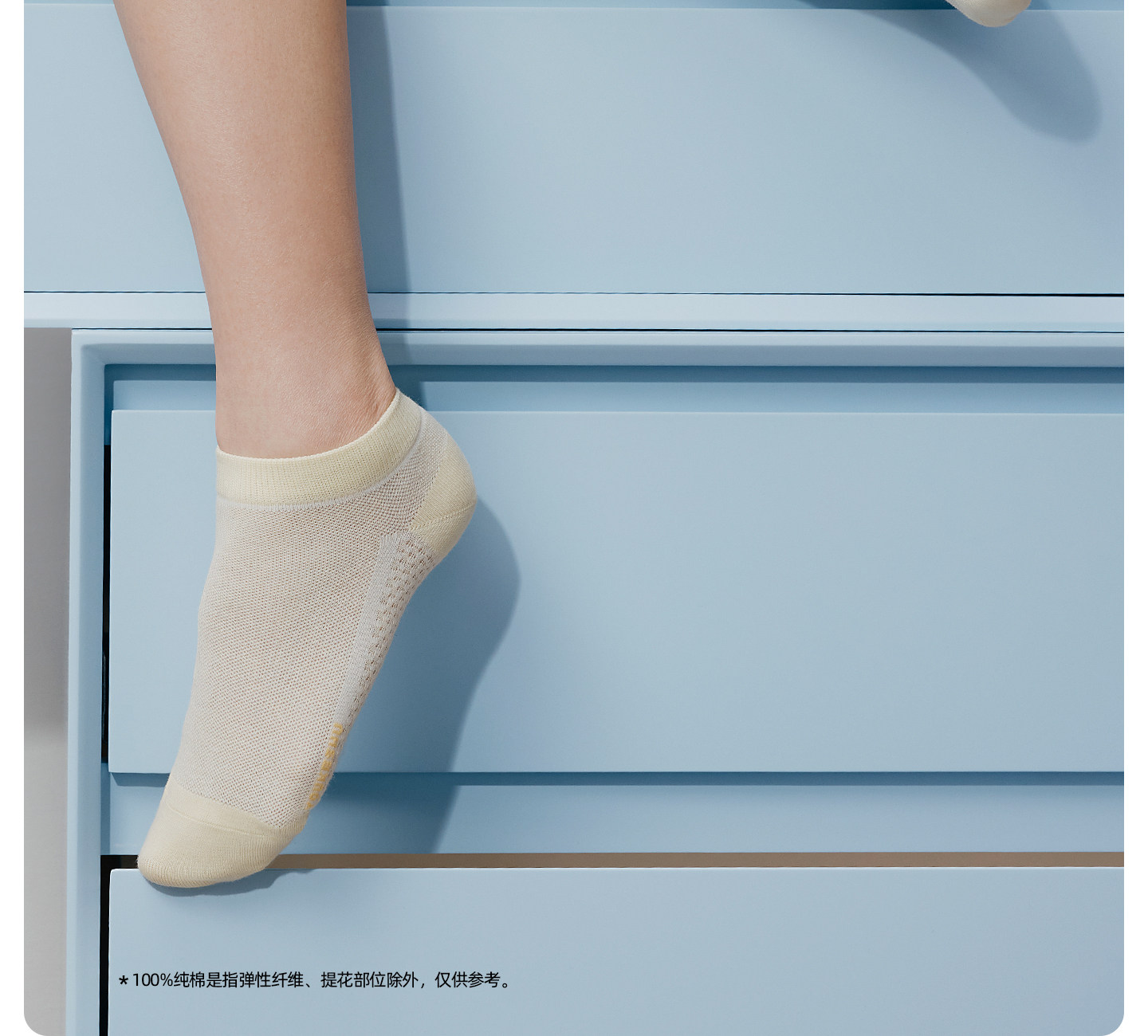 【网眼肌理底】有棵树纯棉抗菌消臭女士短袜5双装-S3080