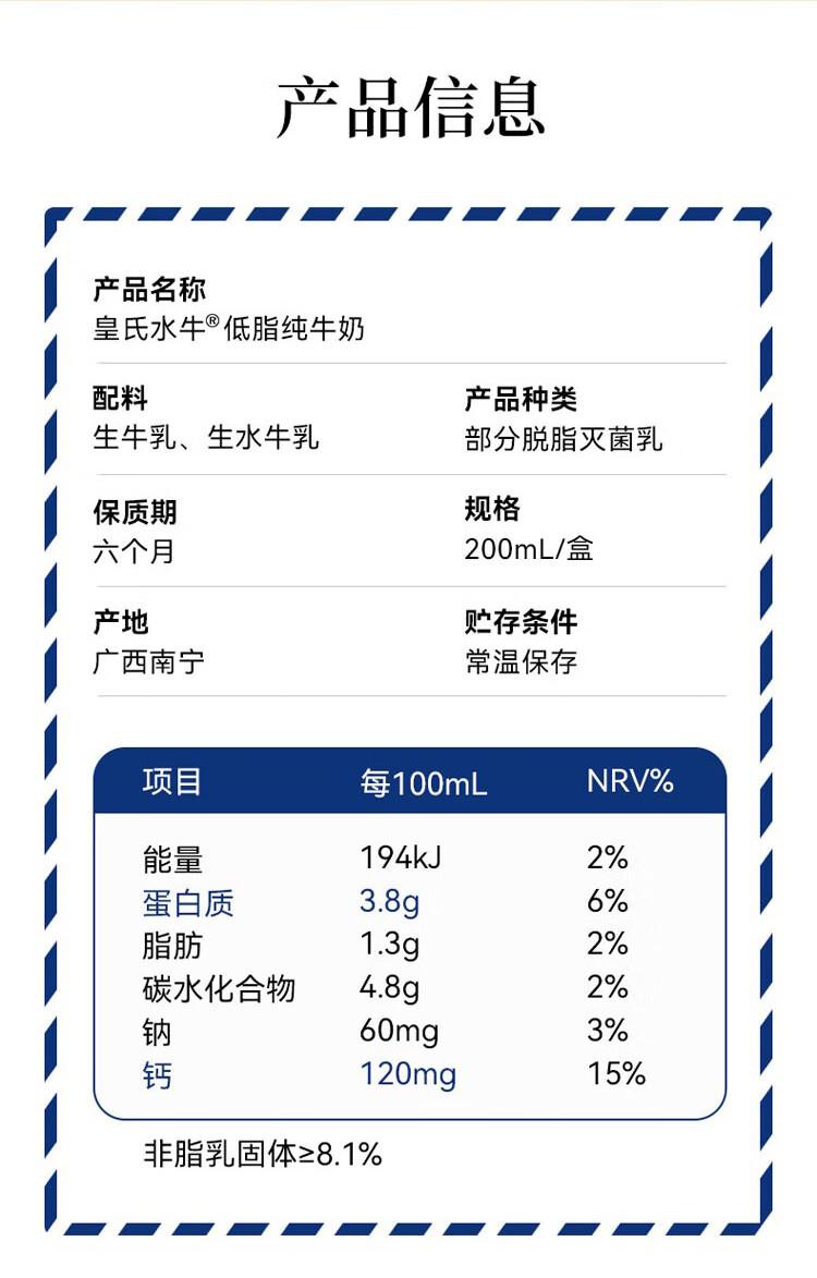 皇氏水牛低脂纯牛奶 200ml*10盒3.8g