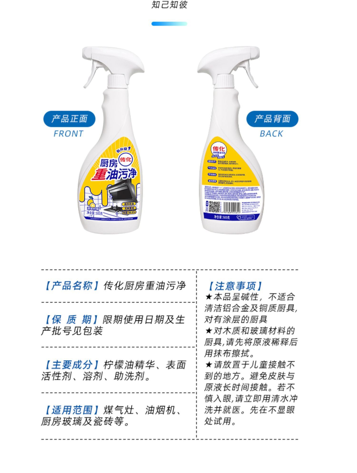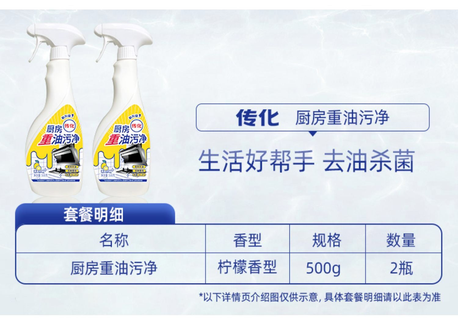 传化厨房洁厕套装 传化500g厨房重油污净*2+传化500g洁厕剂!