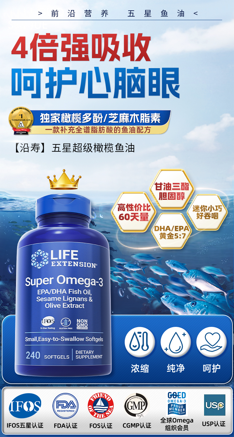 沿寿LIFE EXTENSION超级深海鱼油 240粒
