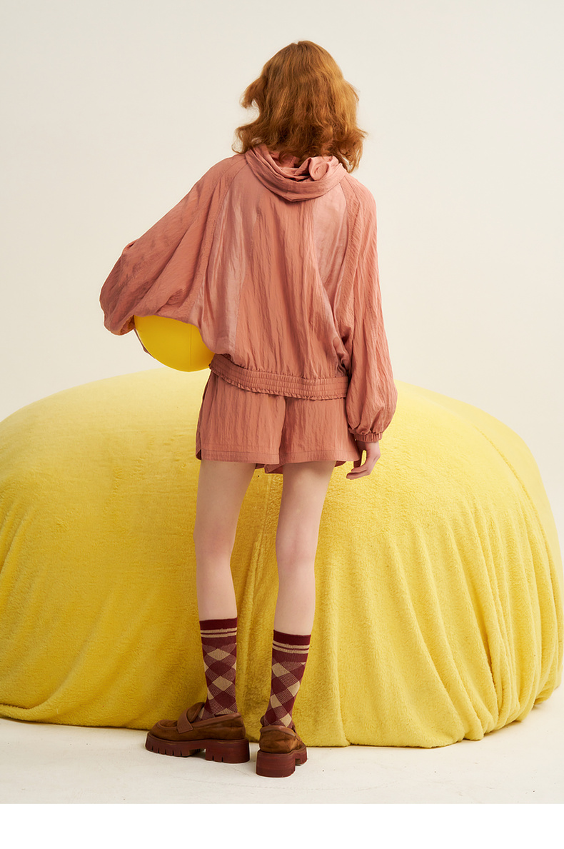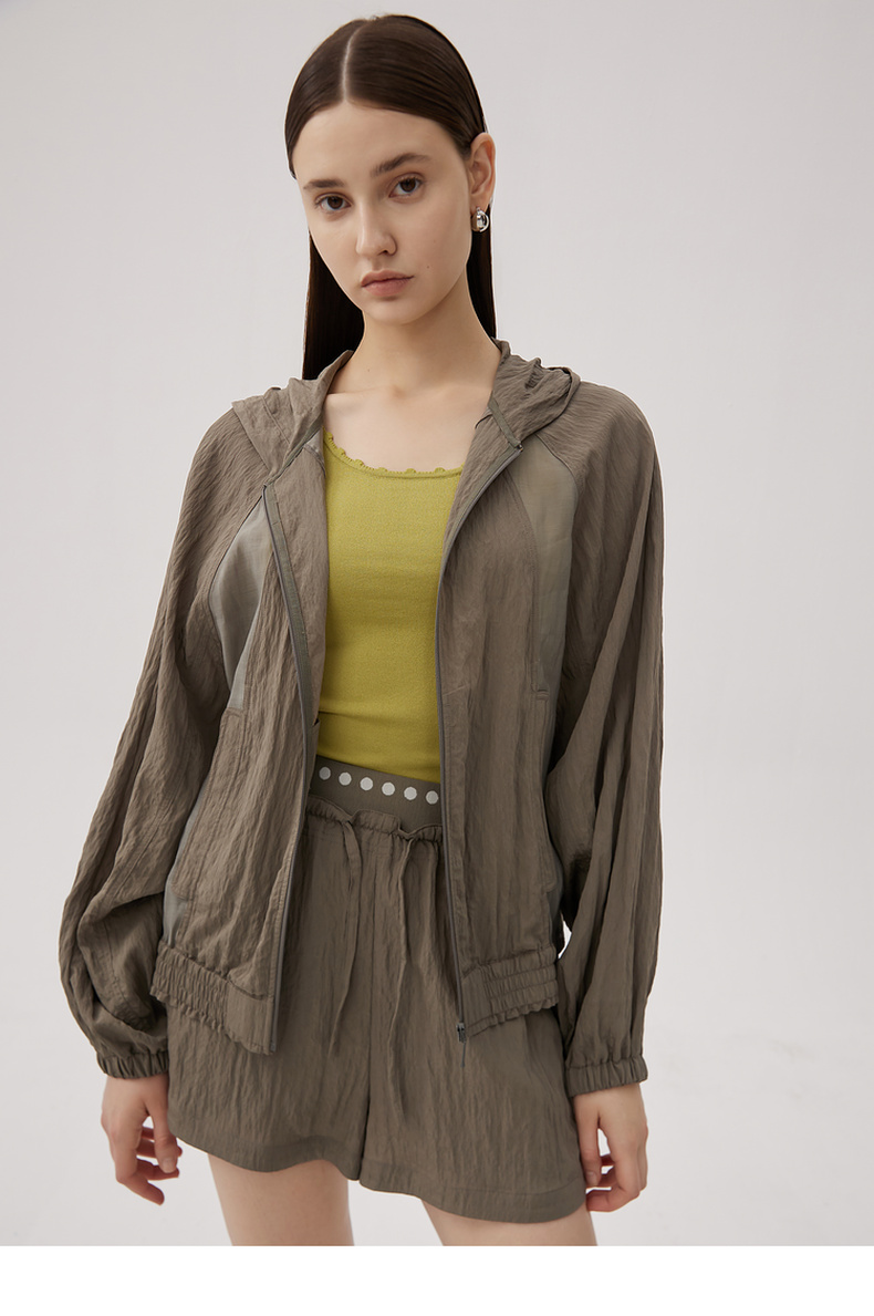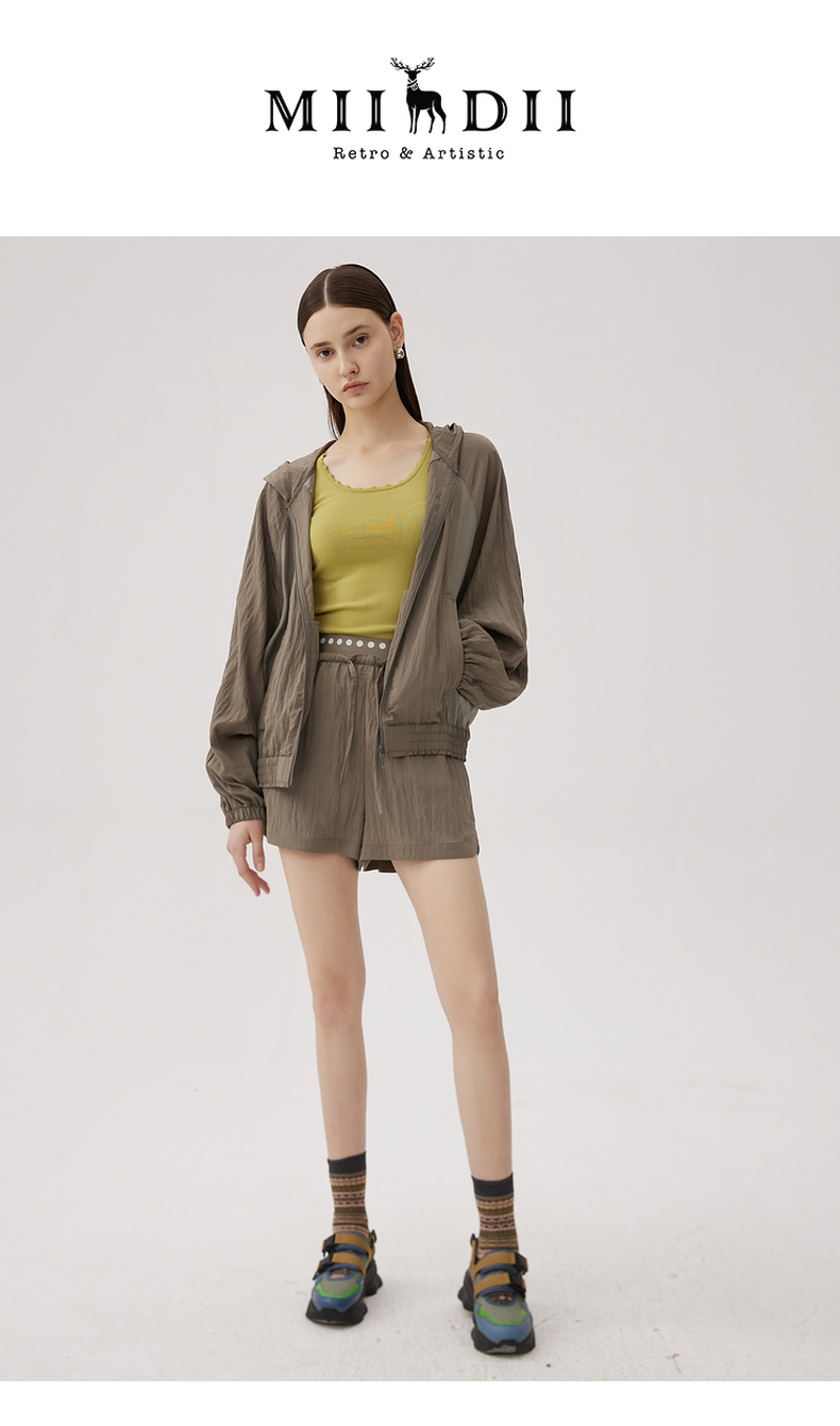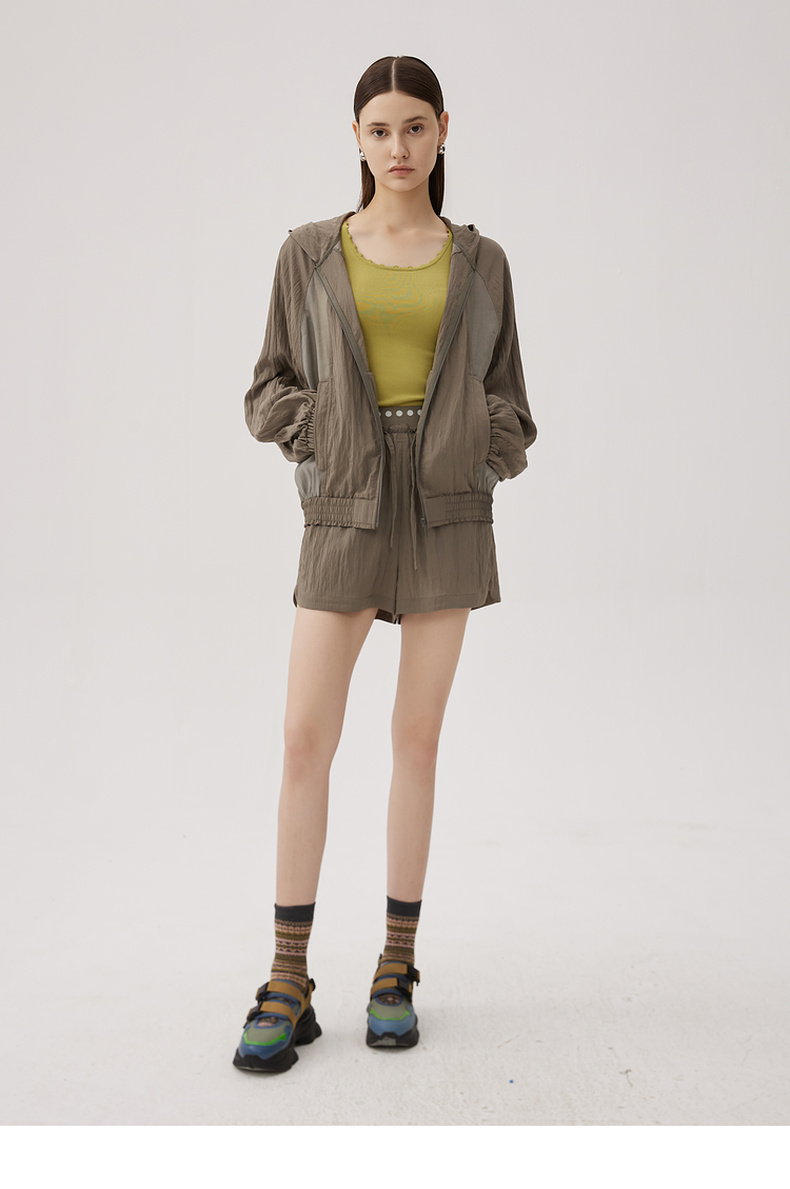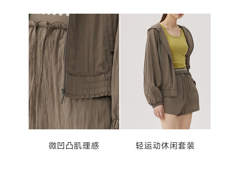 谜底运动休闲套装女士2024秋季新品连帽薄款外套+短裤243MTZ1167