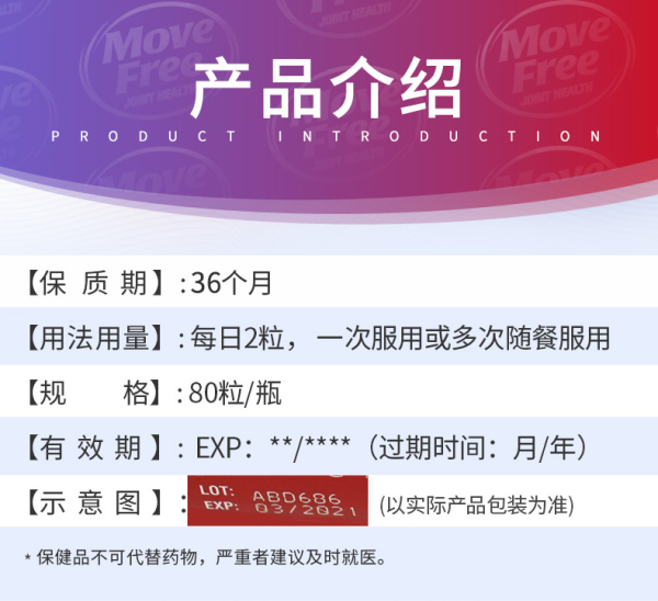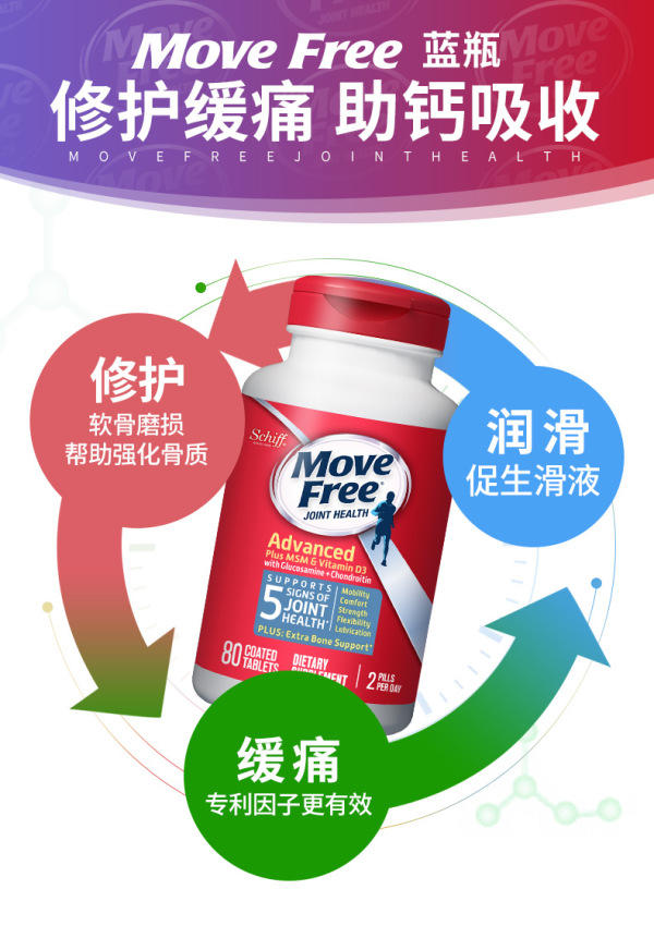 【直邮】MoveFree 蓝瓶维骨力 80粒 1瓶装