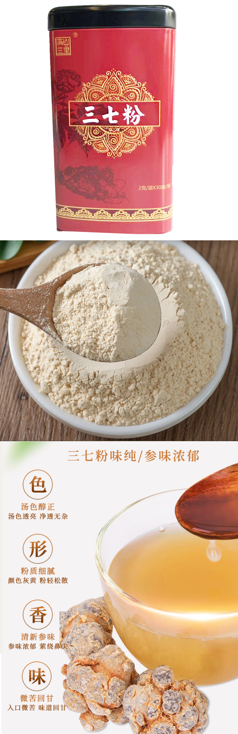 华信牌熟三七粉铁罐60g(2g/袋*30袋)/罐