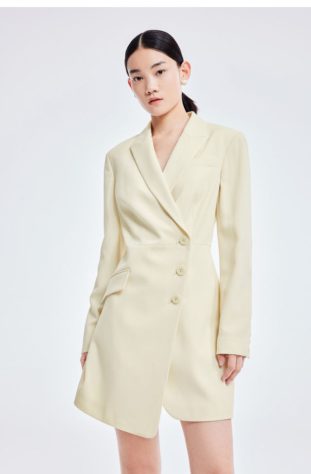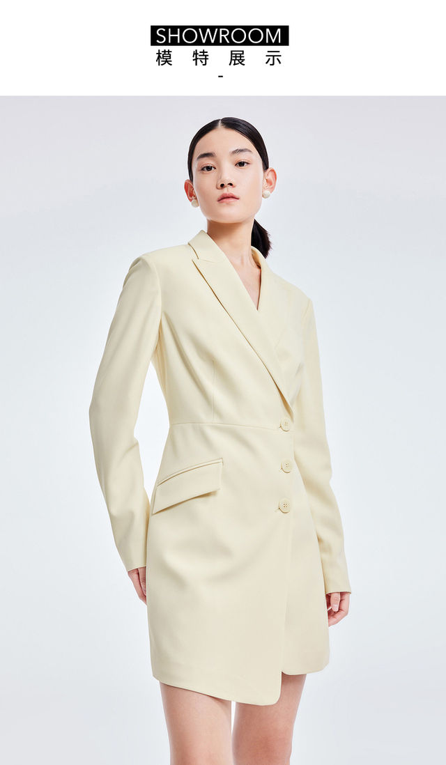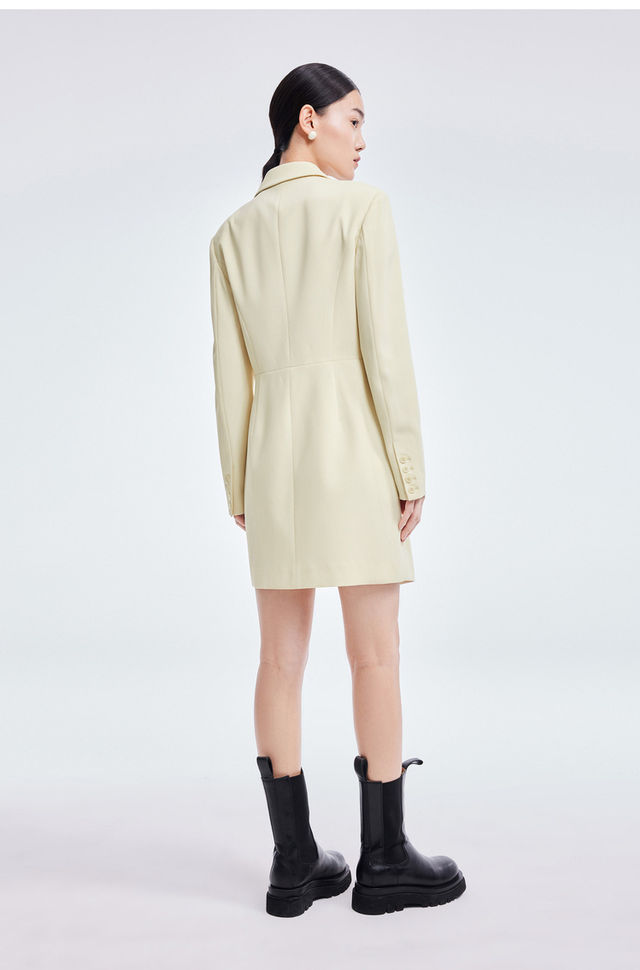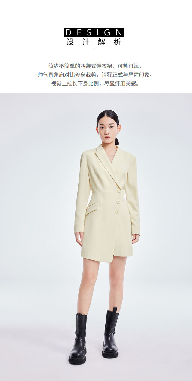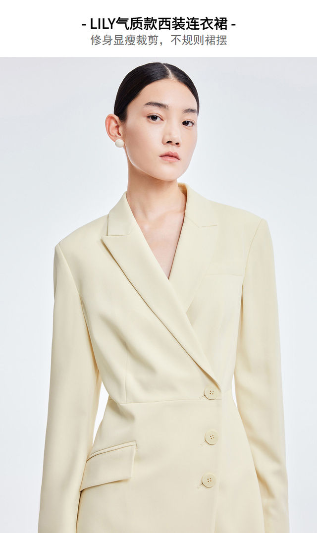 LILY2022夏季新款女装气质纯色通勤款修身西装式连衣裙122210C7160
