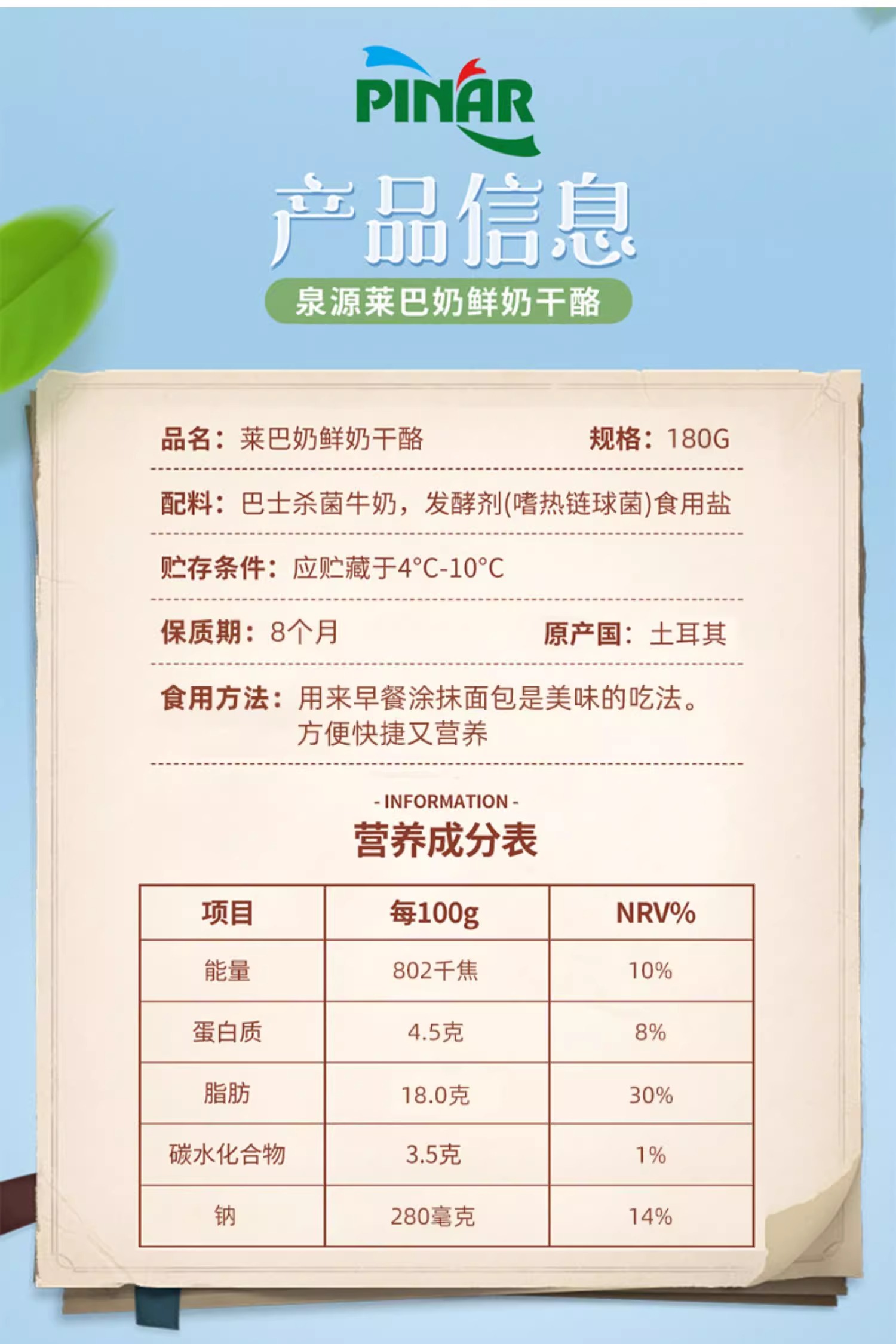【中欧班列精选】土耳其进口泉源Labne涂抹鲜奶酪原制即食莱巴鲜奶奶酪160g/180g/盒