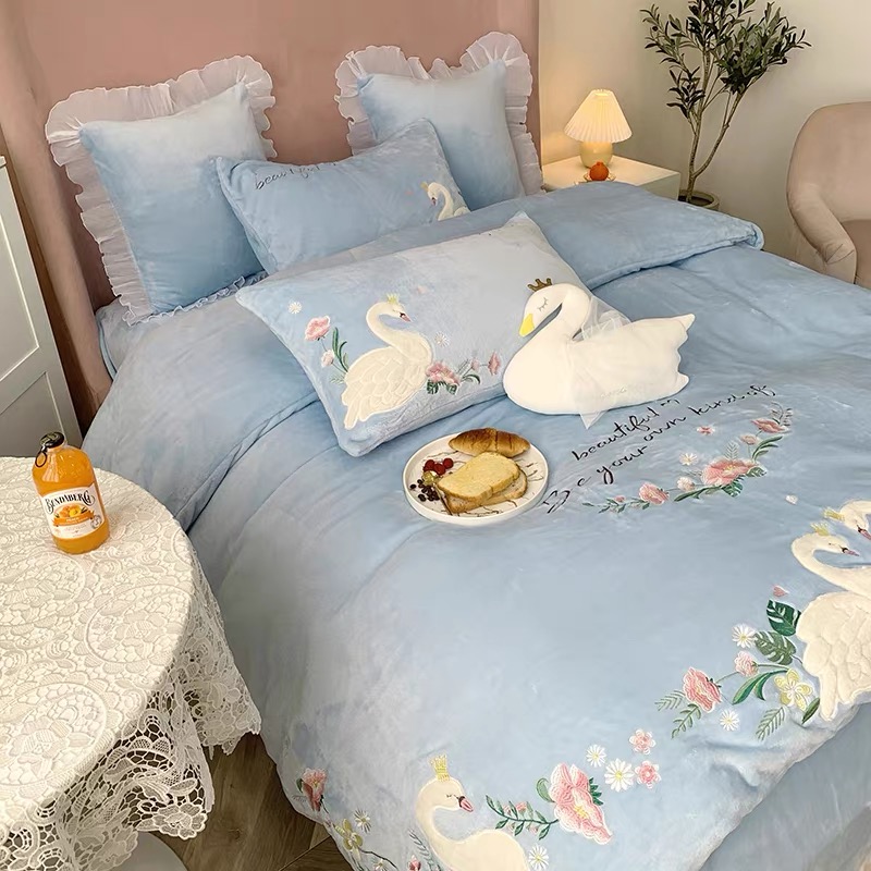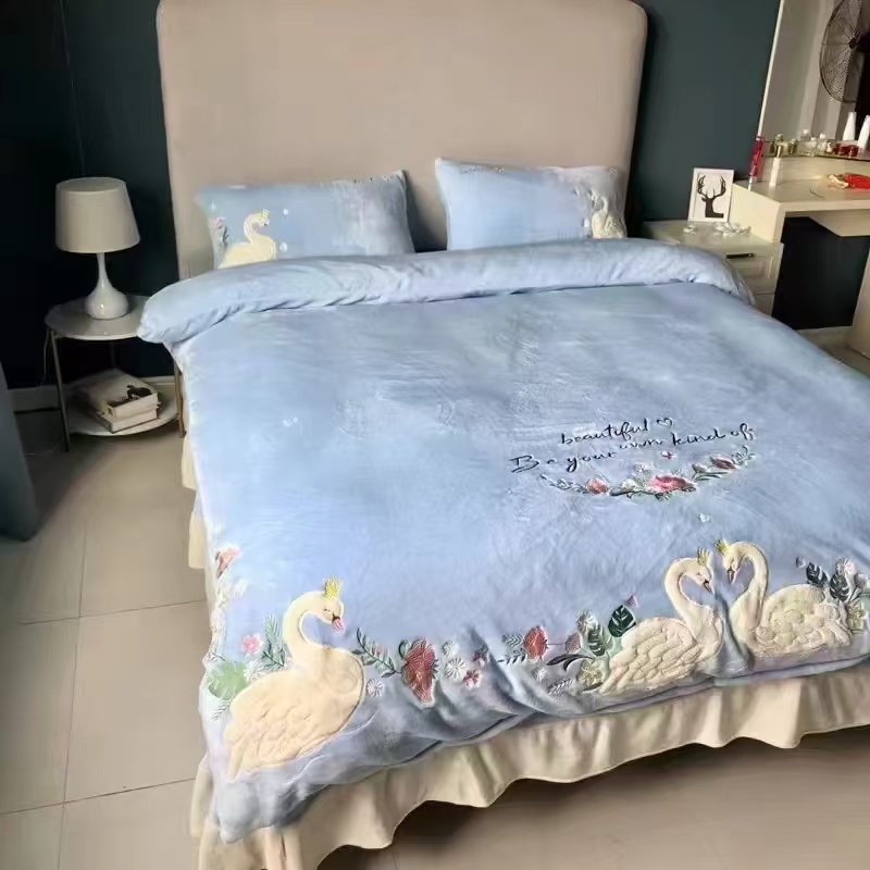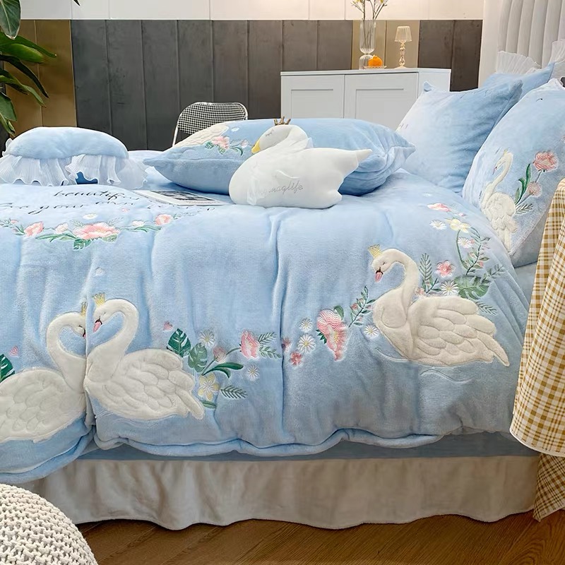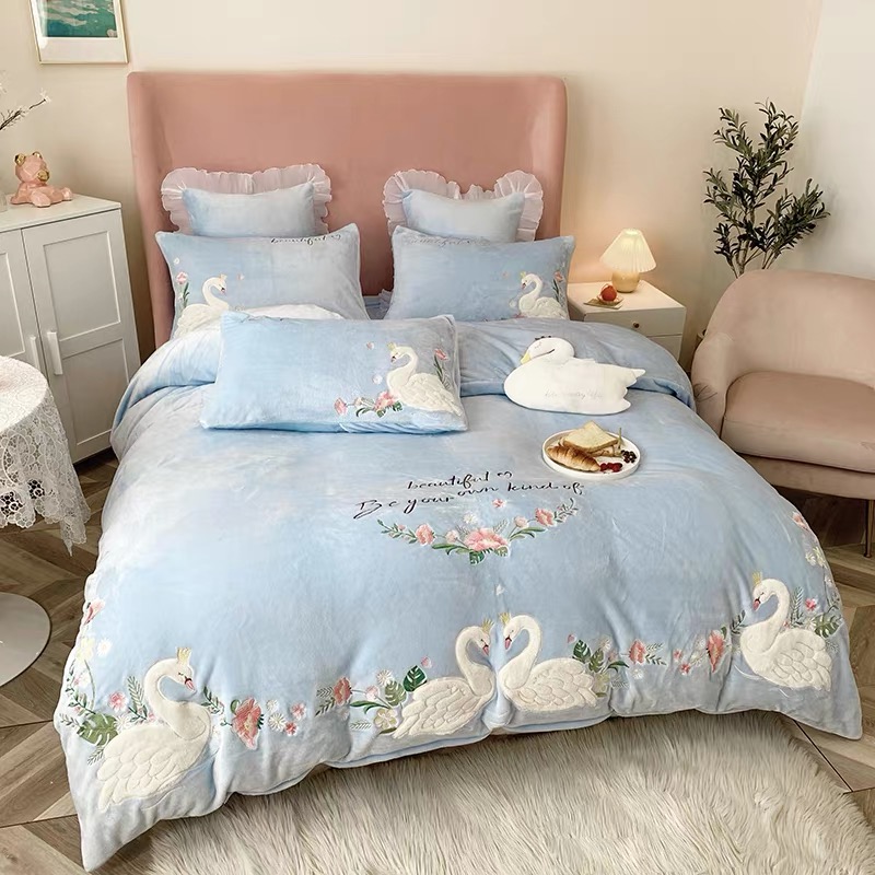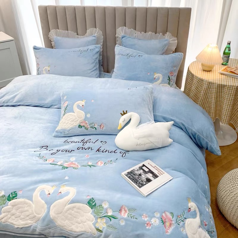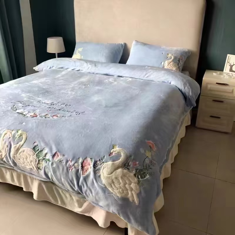 【详情】✅甄选高克重牛奶绒面料更软糯 进口重工刺绣工艺 ✅品牌专柜货源 高品质贵一点 舒服却不止一点点寒冷的冬天想要睡的好 床上必定要有它。