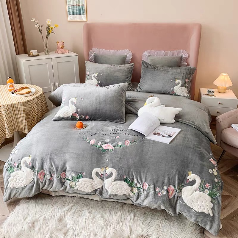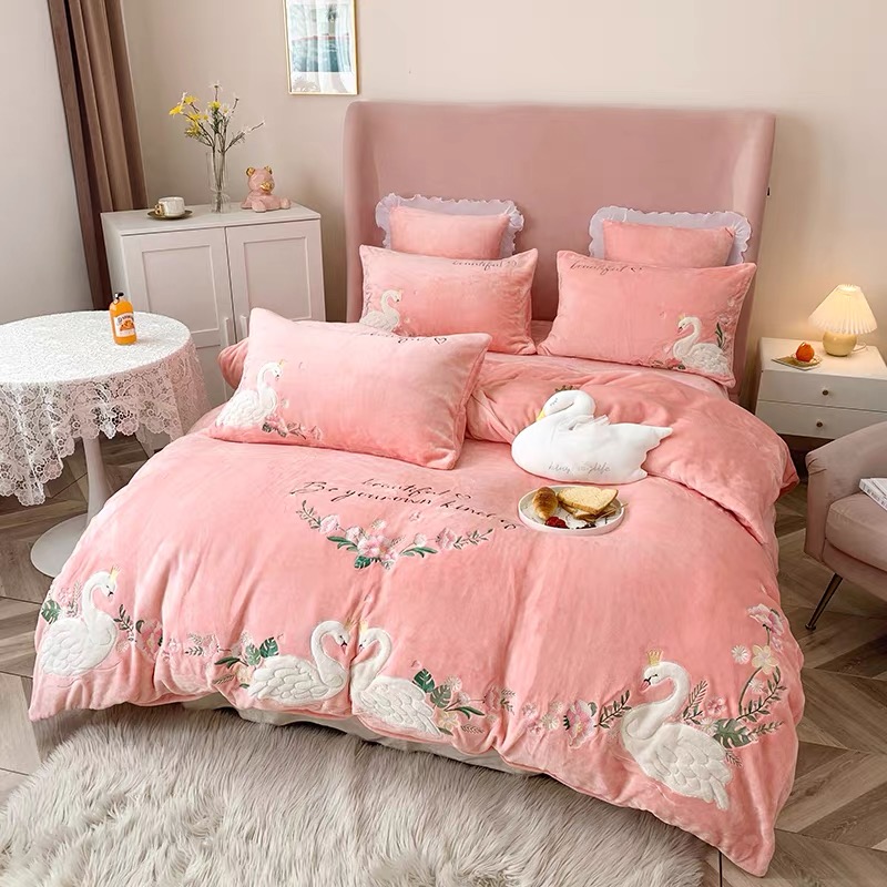 【高克重丽棉绒四件套(牛奶绒升级版) 】✅甄选高克重牛奶绒面料更软糯 进口重工刺绣工艺 寒冷的冬天想要睡的好 床上必定要有它。-RJYL