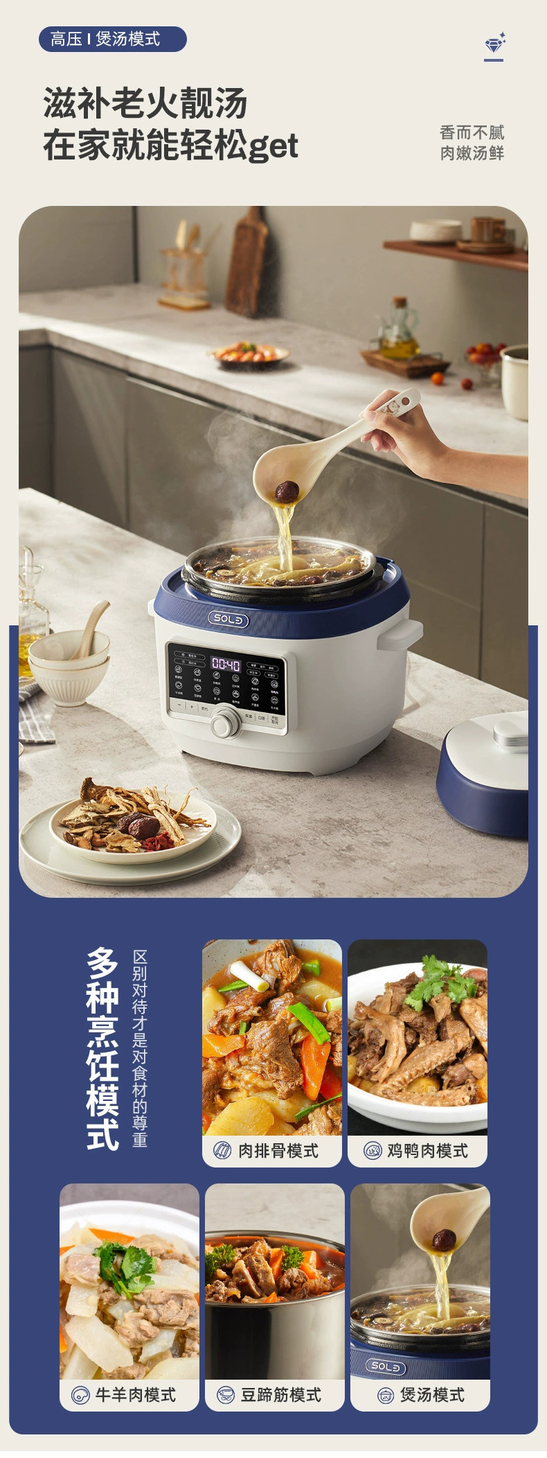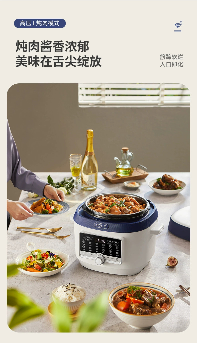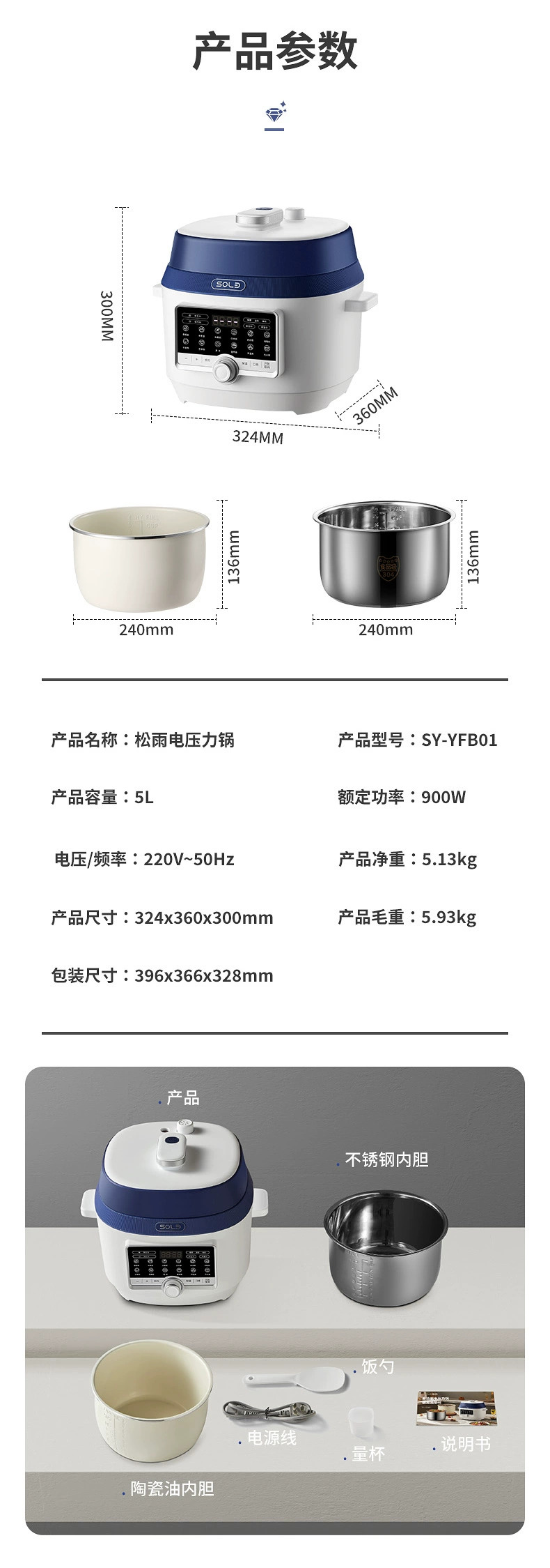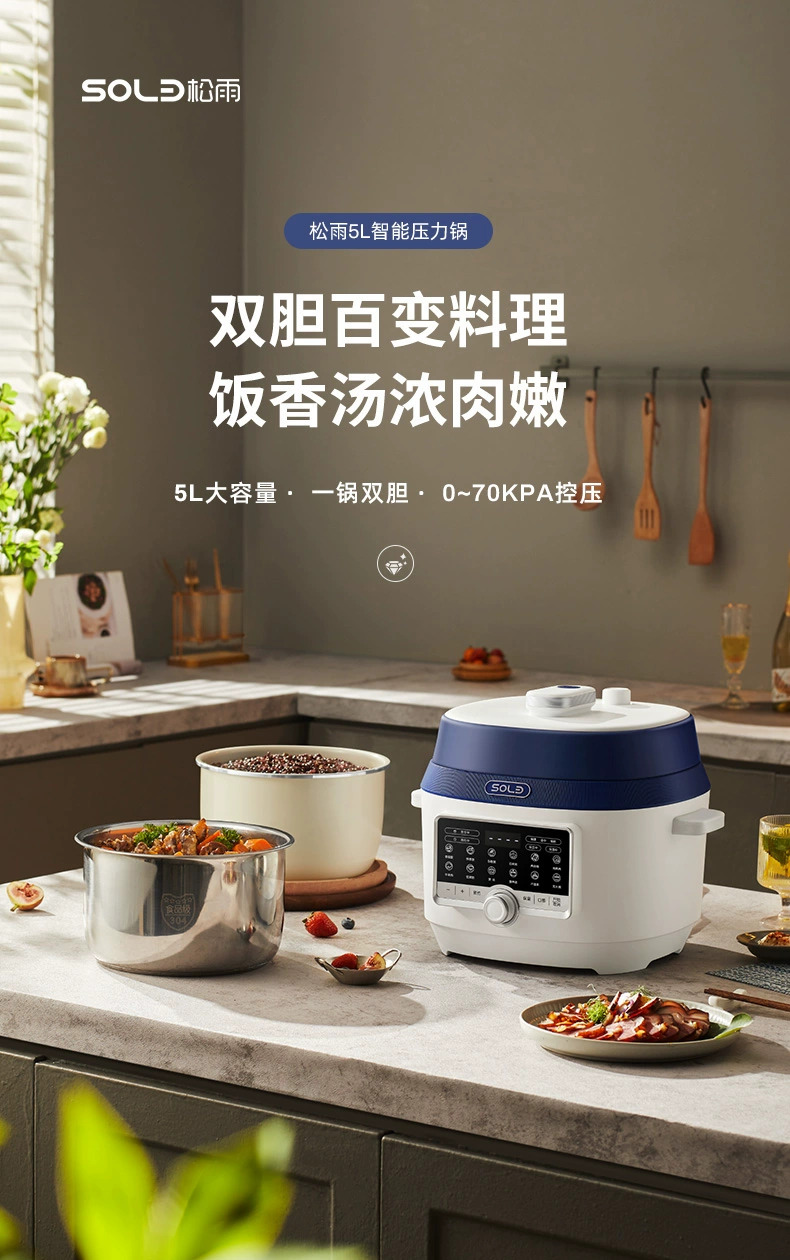 松雨电压力锅家用5L不锈钢双胆高压锅全自动多功能煮饭煲可拆上盖