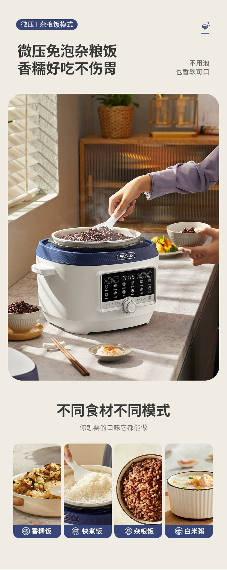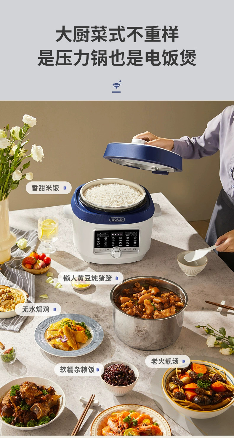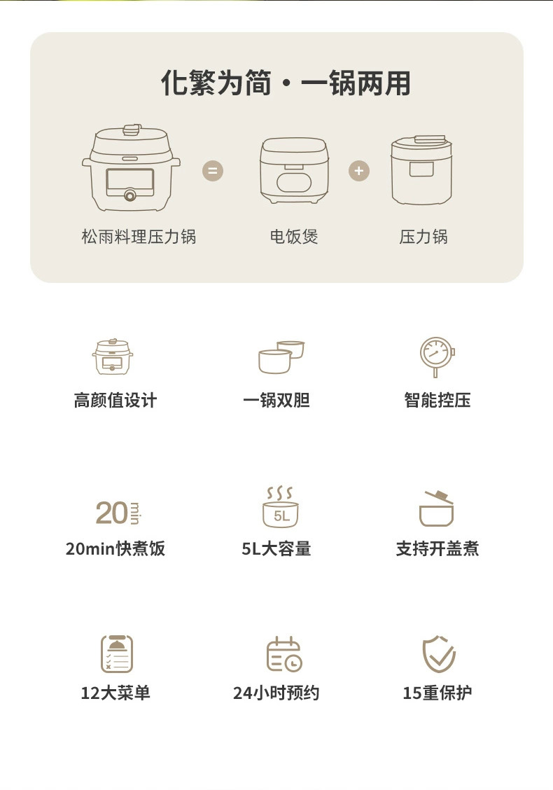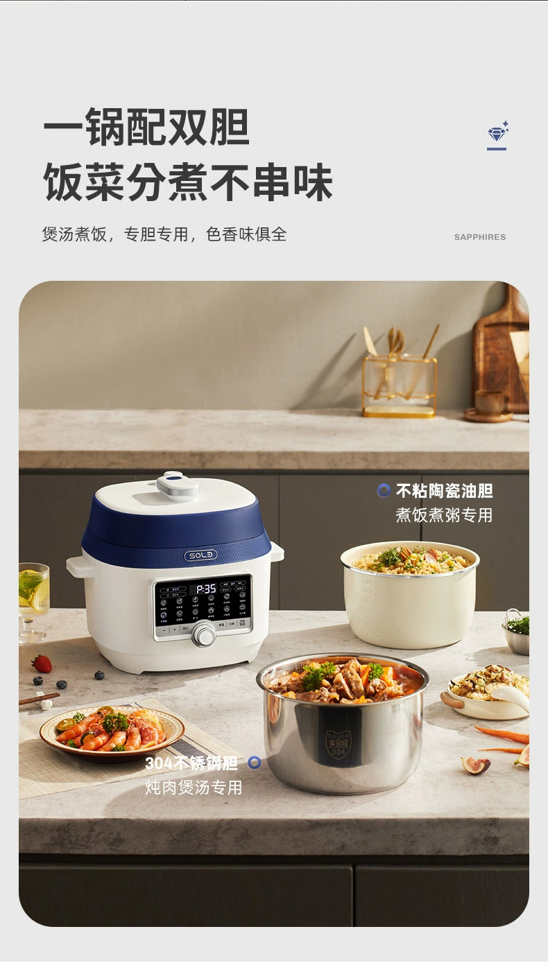 松雨电压力锅家用5L不锈钢双胆高压锅全自动多功能煮饭煲可拆上盖