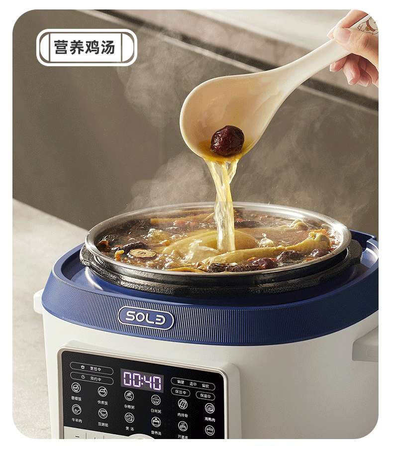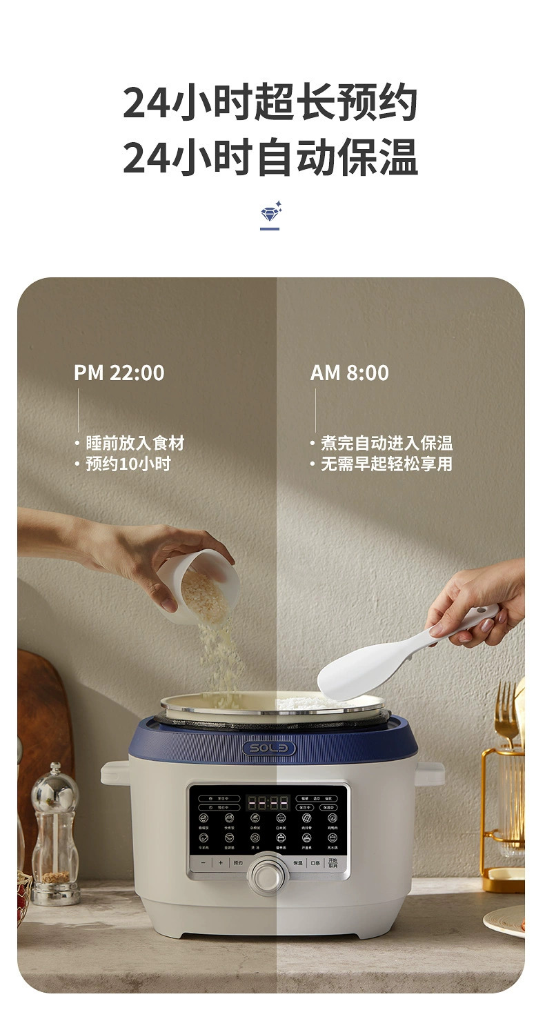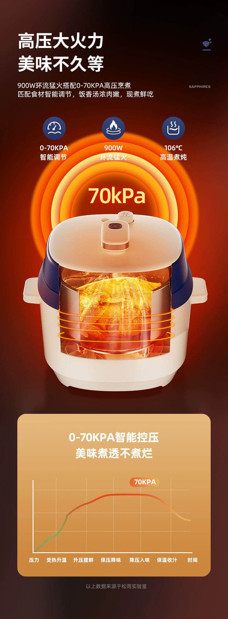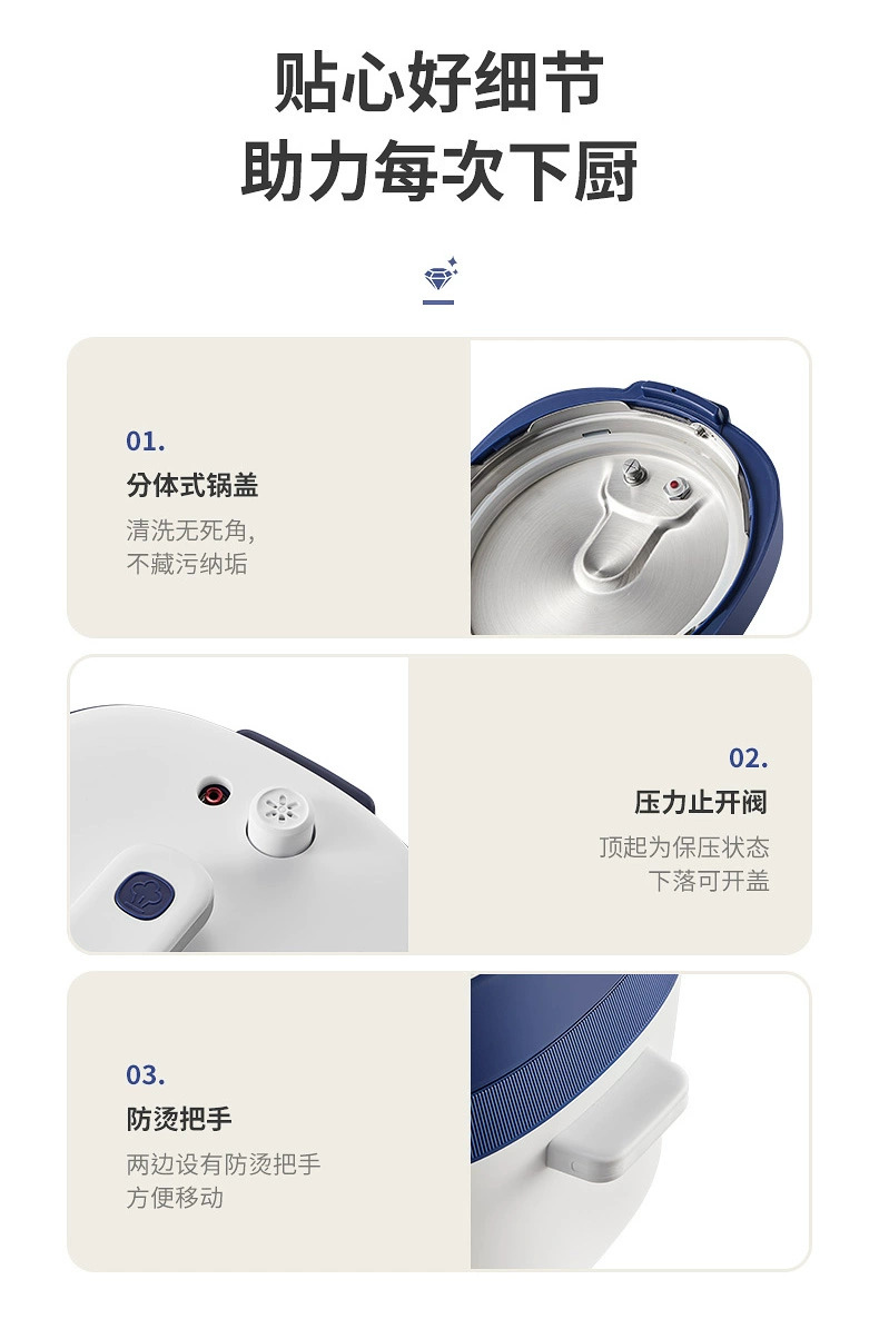 松雨电压力锅家用5L不锈钢双胆高压锅全自动多功能煮饭煲可拆上盖