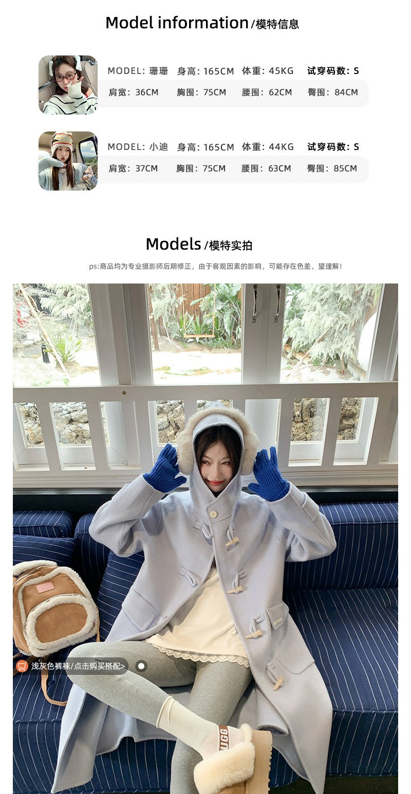 <曾小咸推荐>现货秒杀 !微信超特价!韩系连帽牛角扣毛呢外套 日常489.99 立减250 秒杀239.99!!