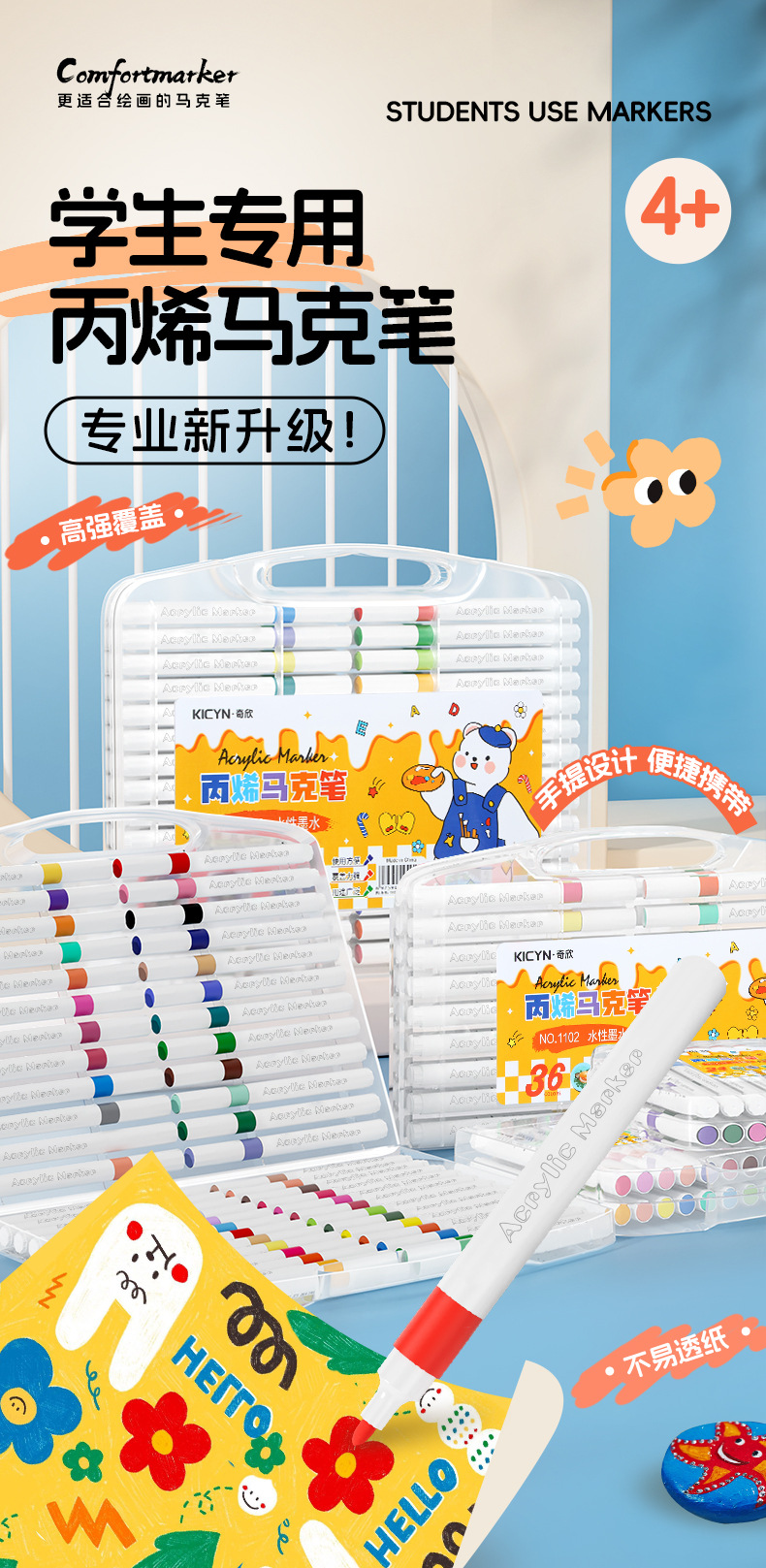 [万物皆可画!丙烯马克笔】 小学生专用 儿童水彩笔 幼儿园专用 可水洗画画笔彩色笔