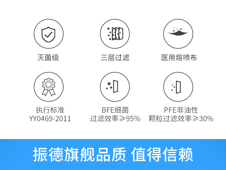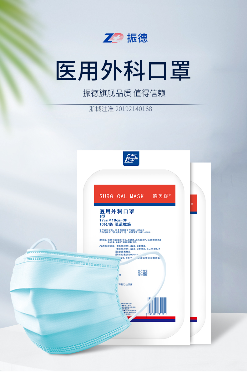 KJ 振德德美舒 医疗一次性医用外科口罩10只装 灭菌防病菌三层防护透气医生用