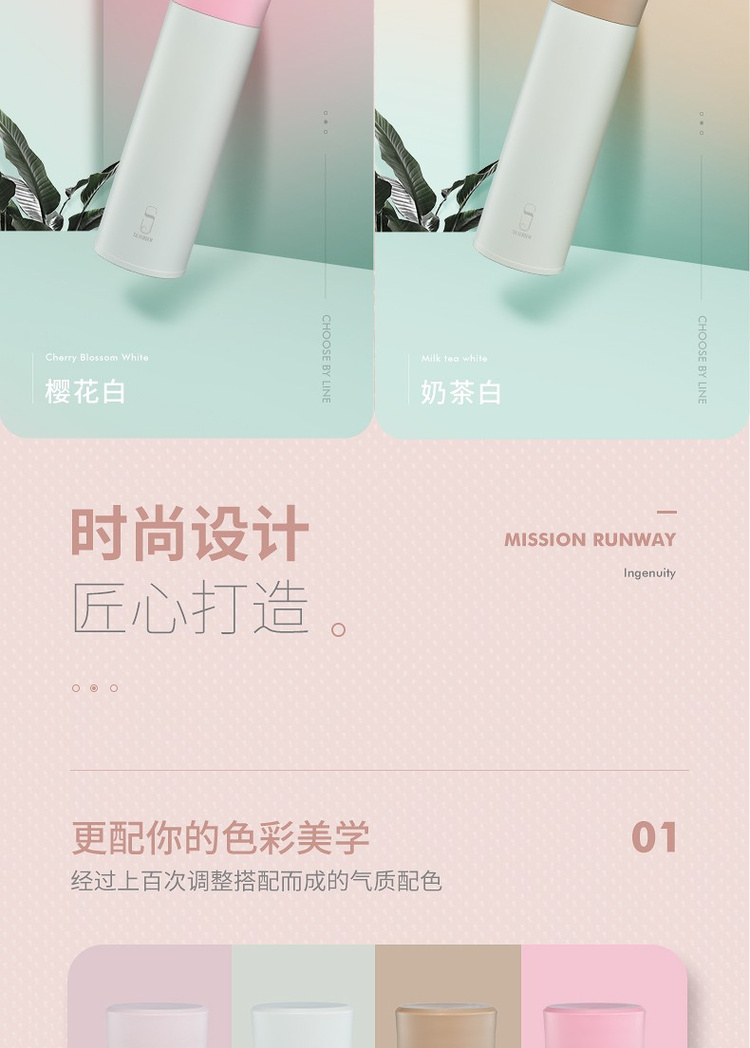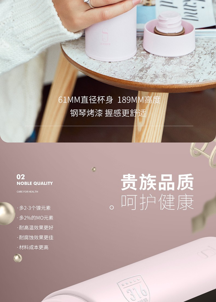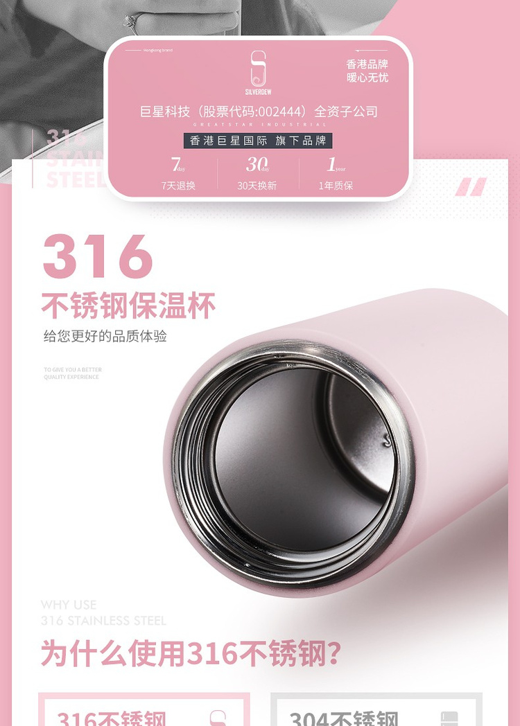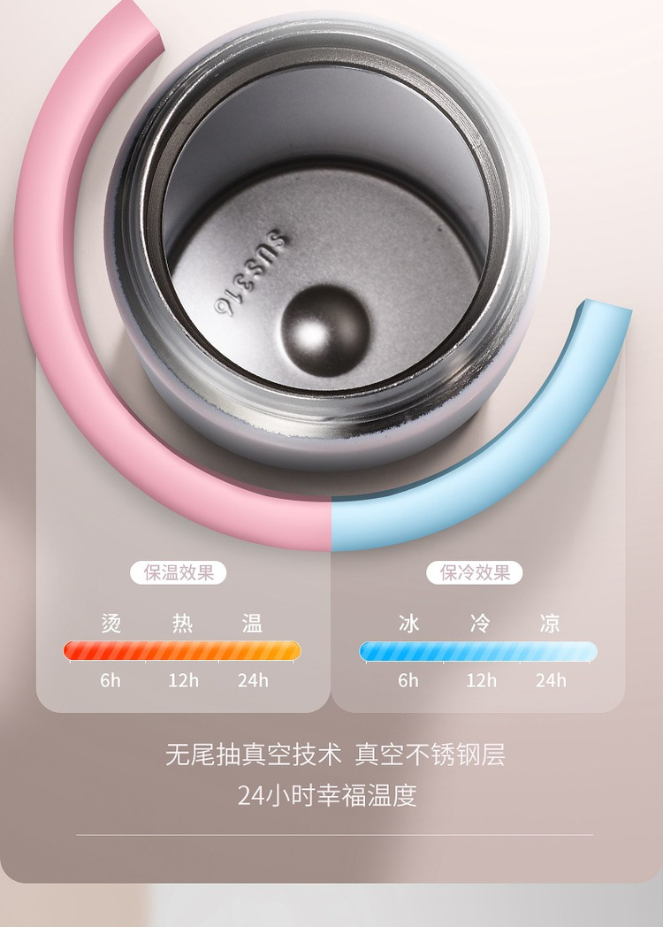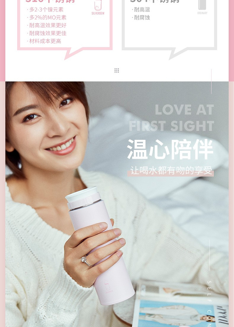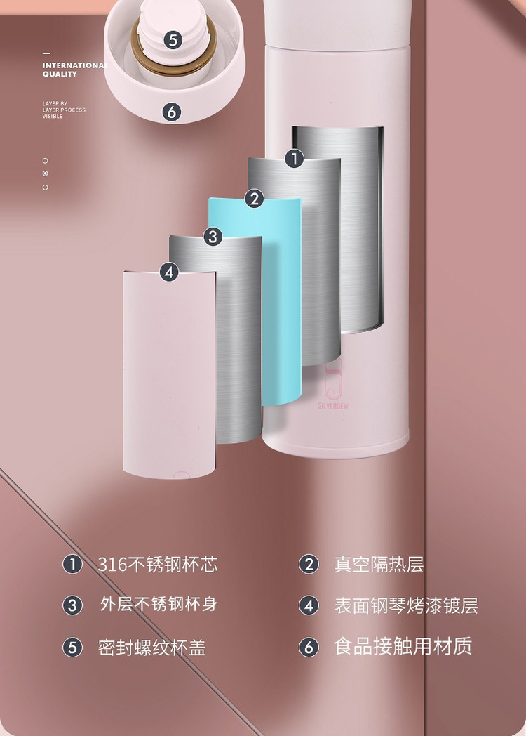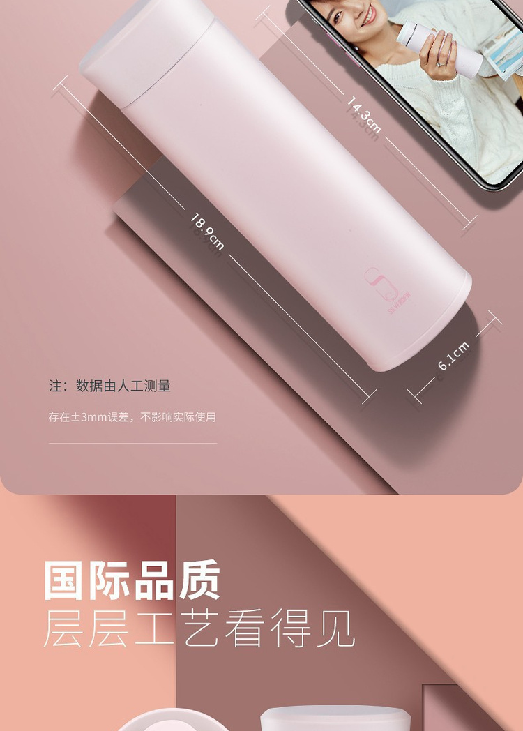 诗芙迪(SILVERDEW)清新保温杯女士水杯子小巧便携316不锈钢长效保温300ml