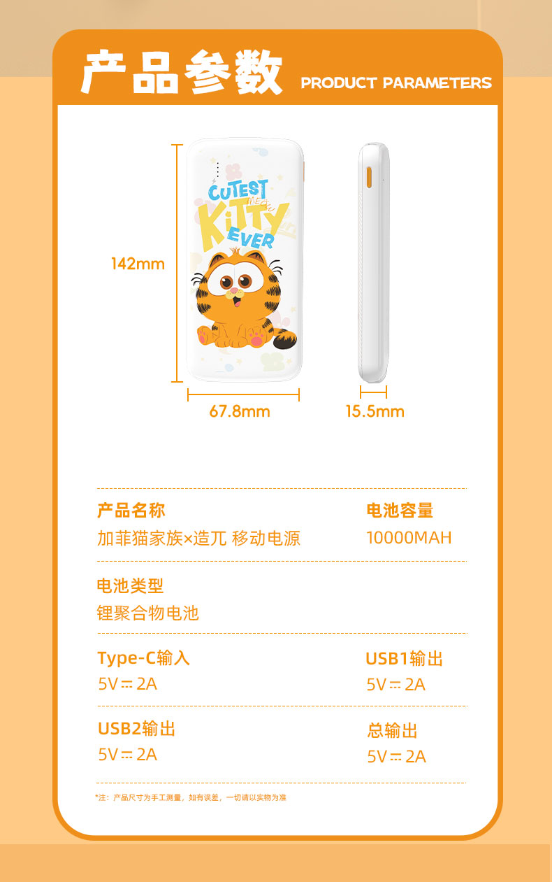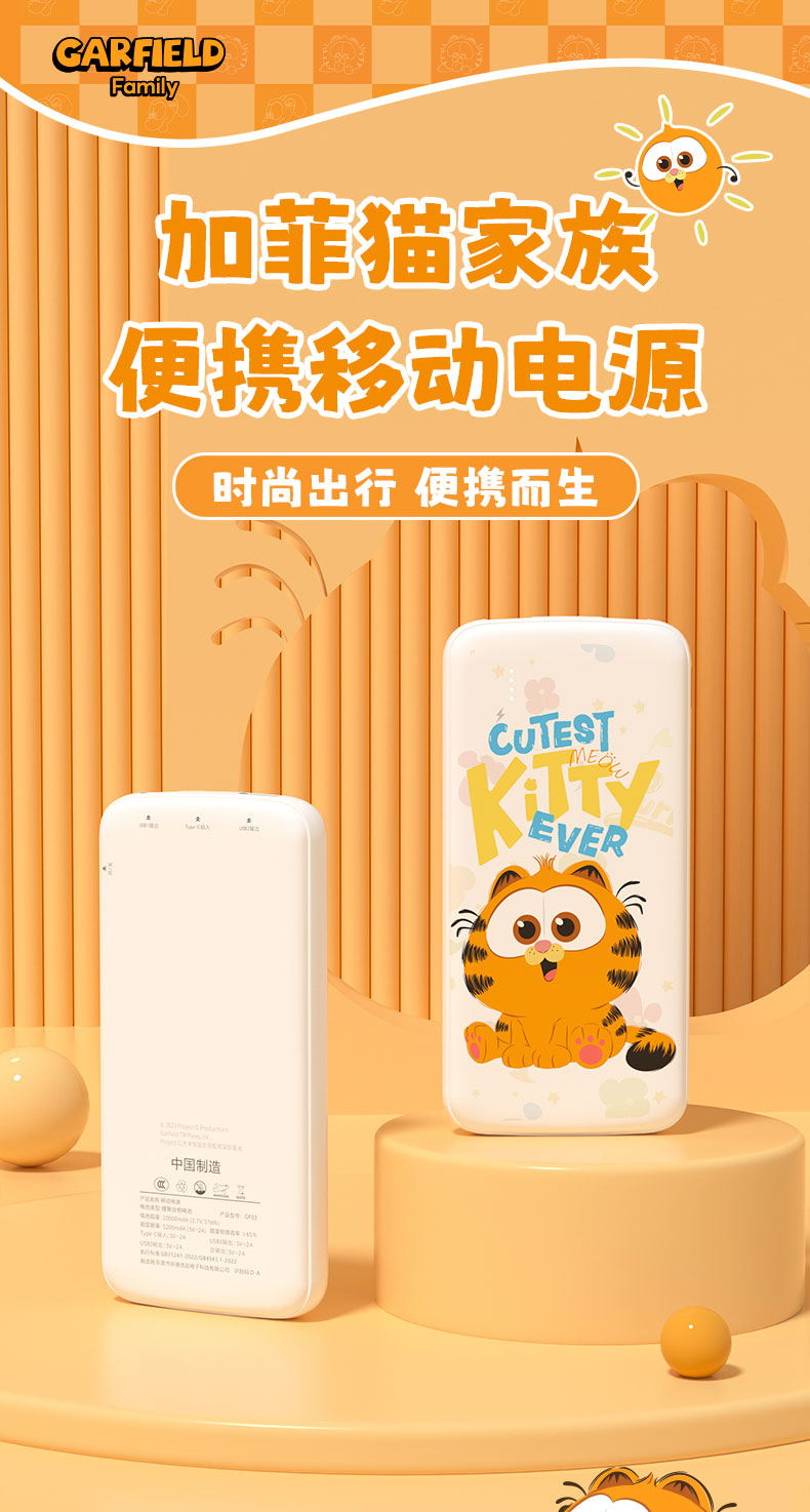 加菲猫10000毫安充电宝1个