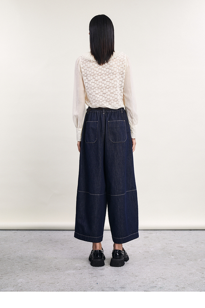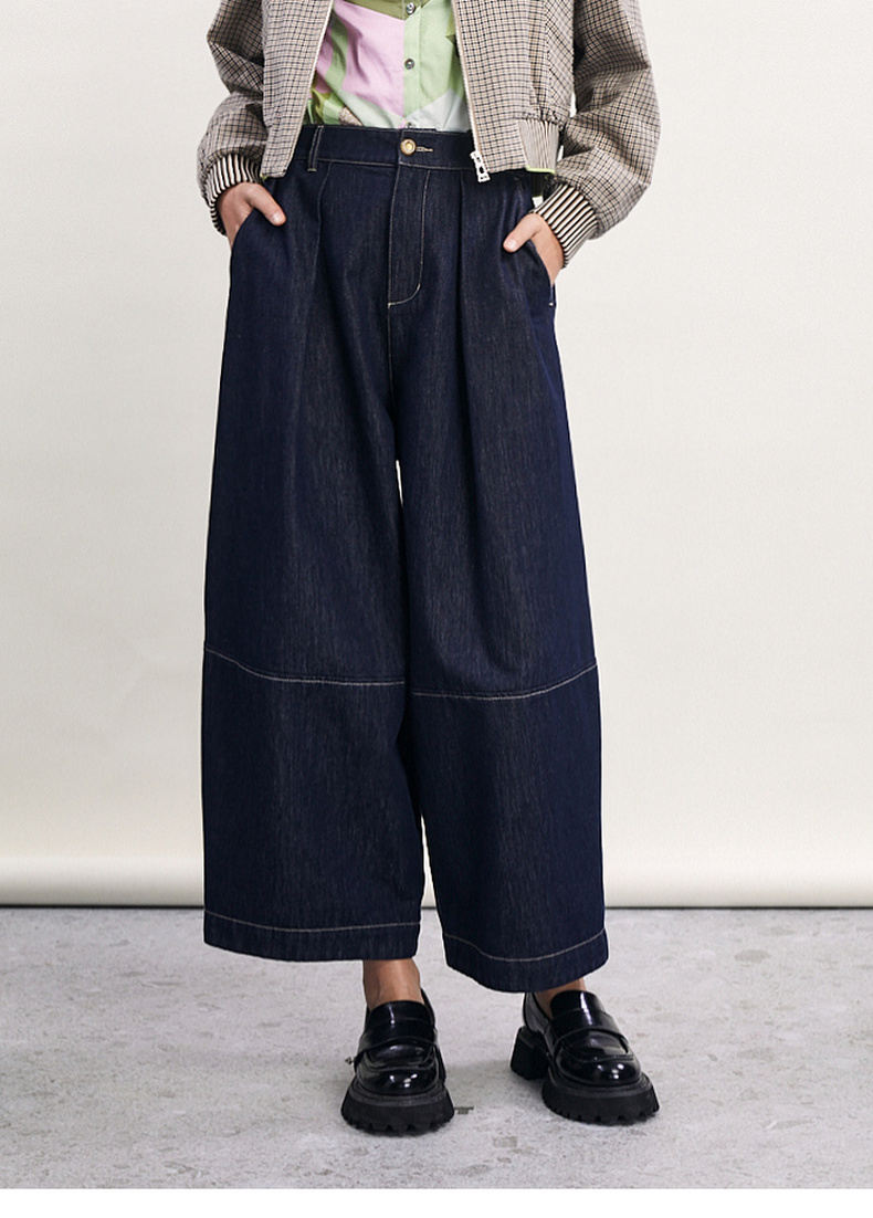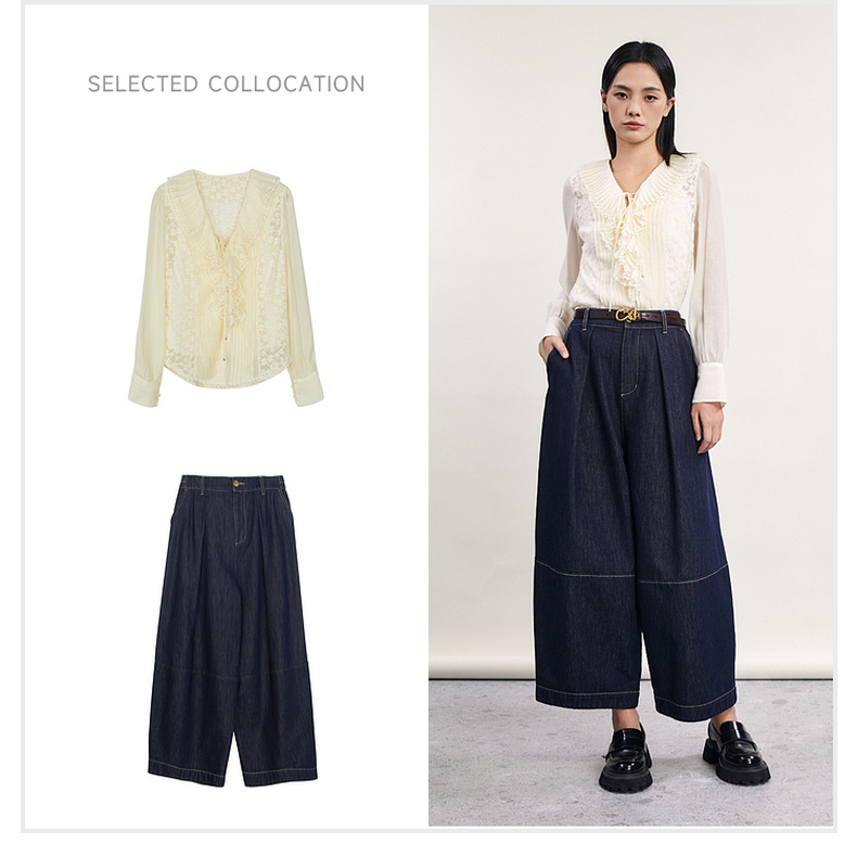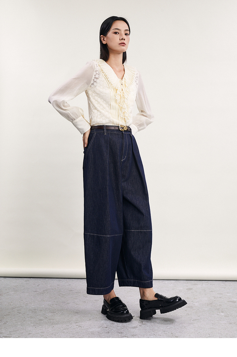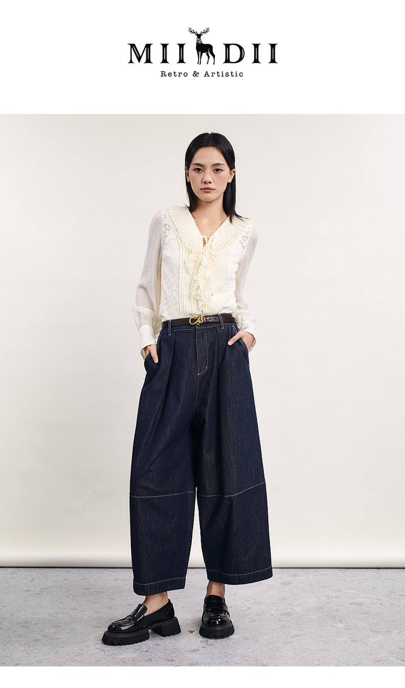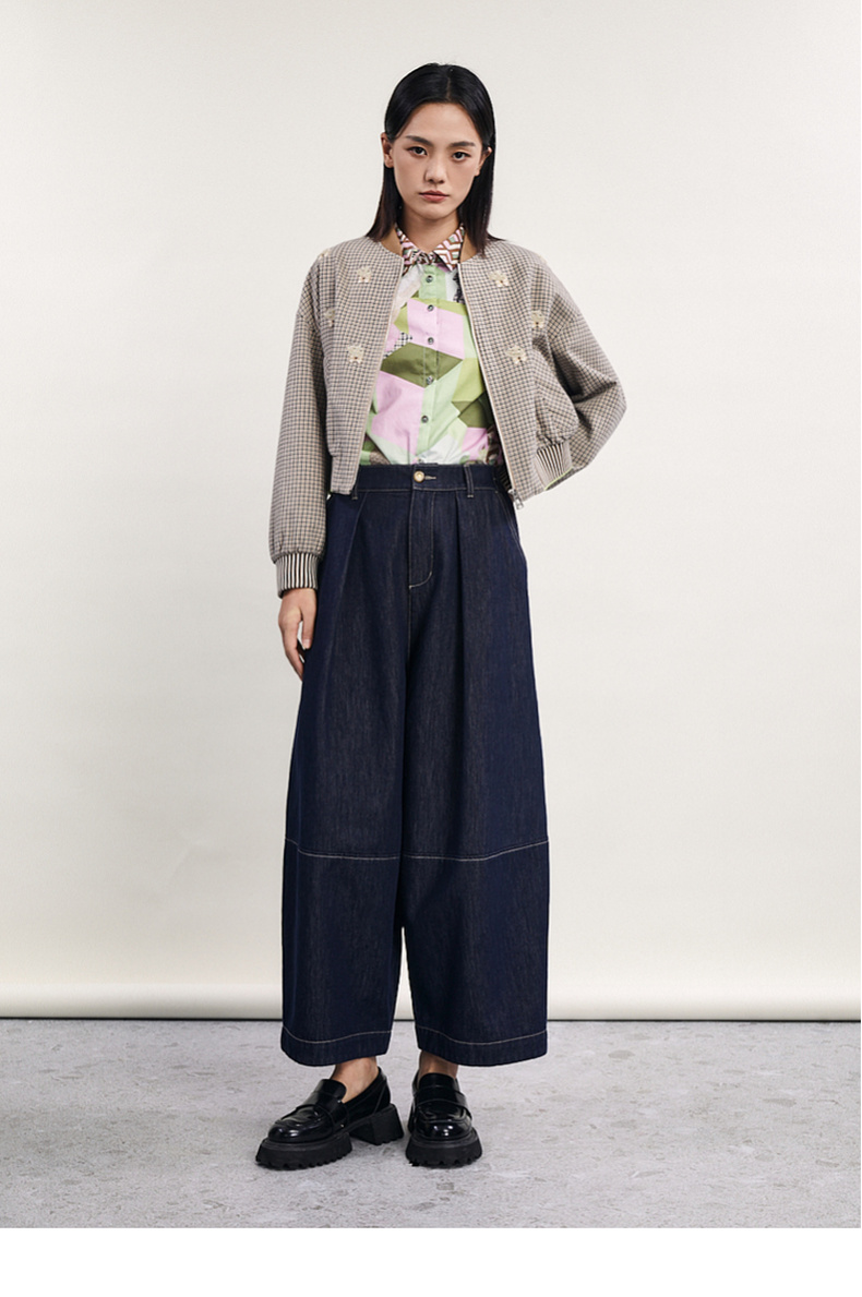 谜底直筒裤女2024春季新款时尚特色高腰宽松牛仔裤女士241MK0157