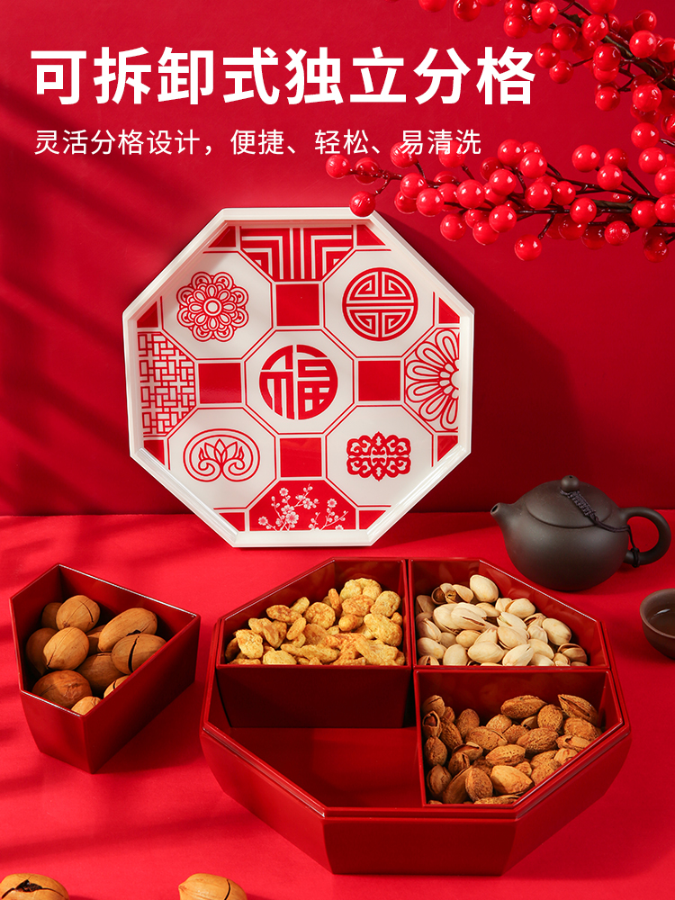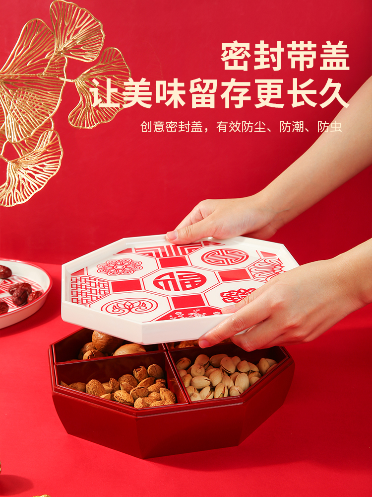 康巴赫生活馆五和 新款中式密胺糖果盒新年客厅家用干果盘瓜子收纳盒