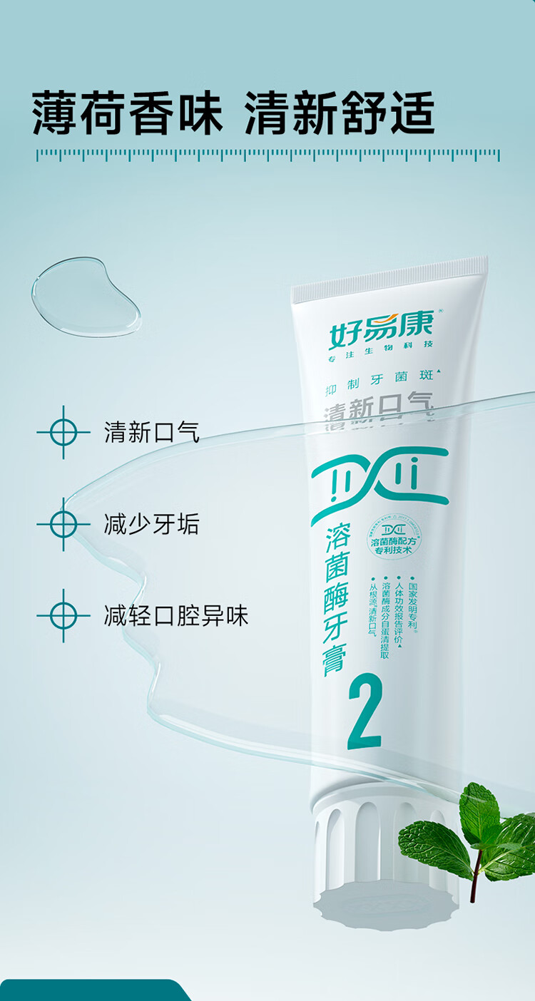 好易康 清新口气溶菌酶牙膏(2号)120g