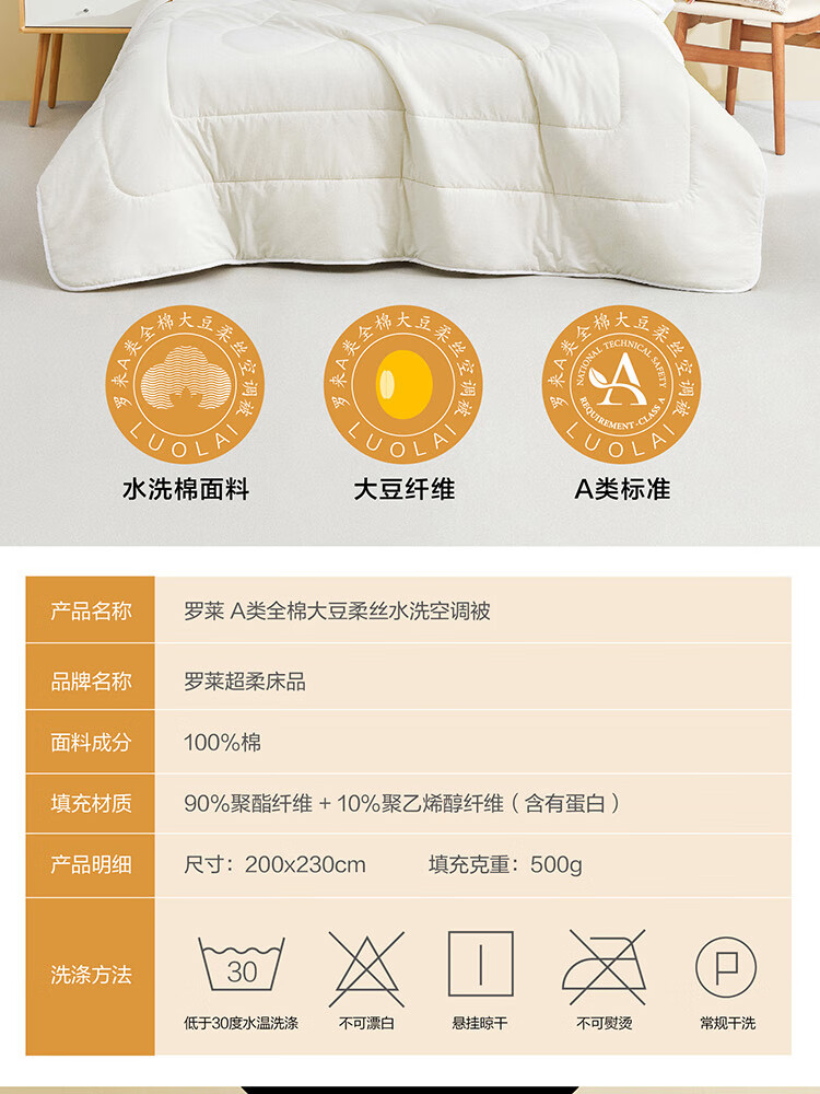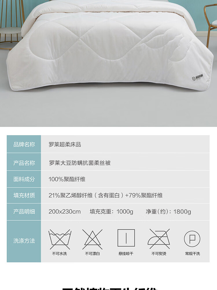 罗莱 大豆防螨抗菌柔丝冬被Ⅱ200*230cm