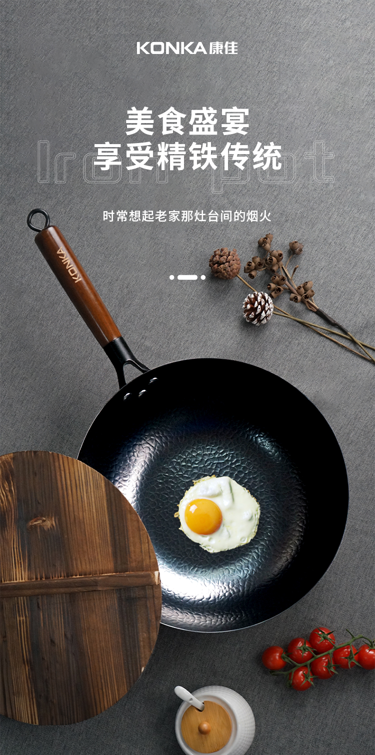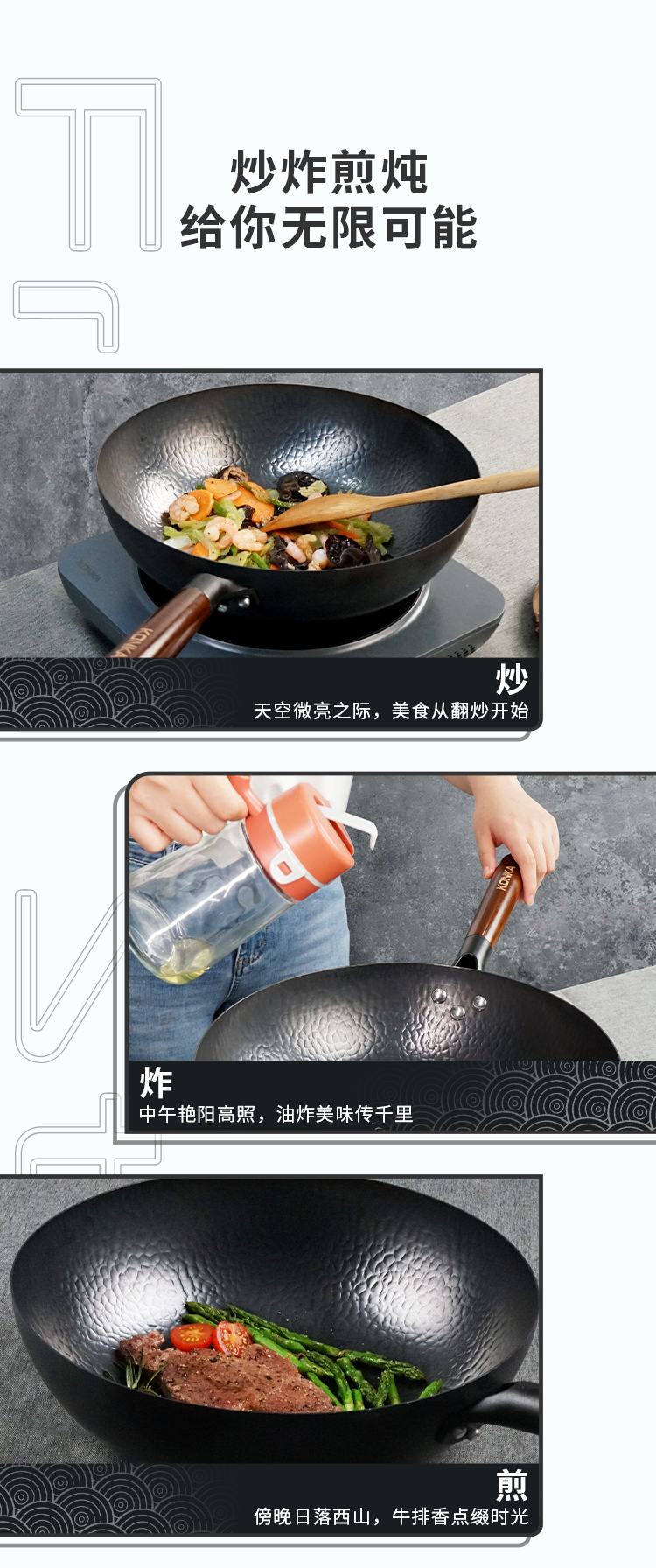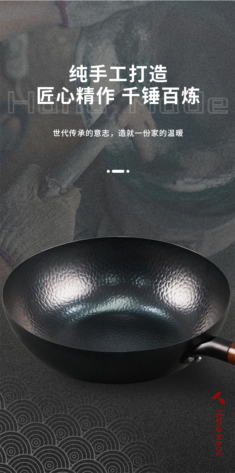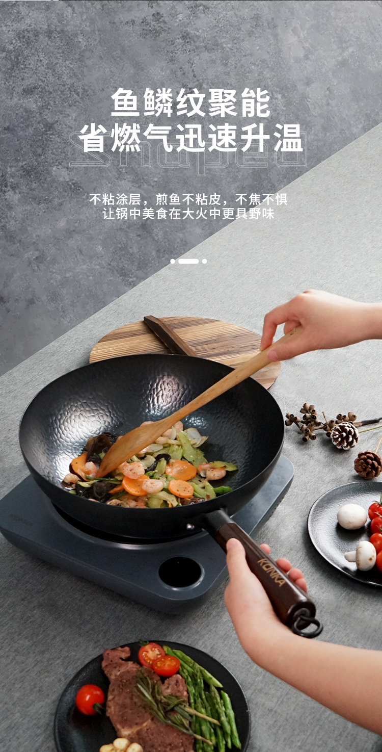 康佳(KONKA)0103锻打老铁锅无化学涂层不粘精铁炒锅炒菜锅不易锈家用燃气灶电磁炉通用炒锅