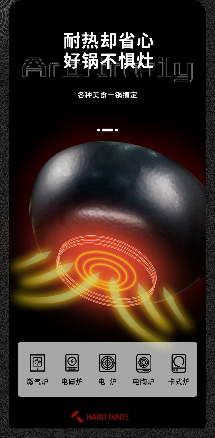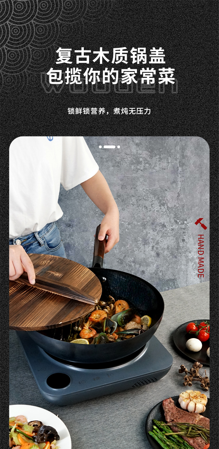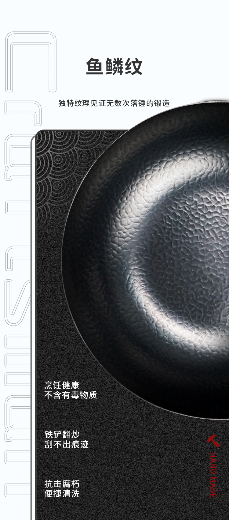 康佳(KONKA)0103锻打老铁锅无化学涂层不粘精铁炒锅炒菜锅不易锈家用燃气灶电磁炉通用炒锅