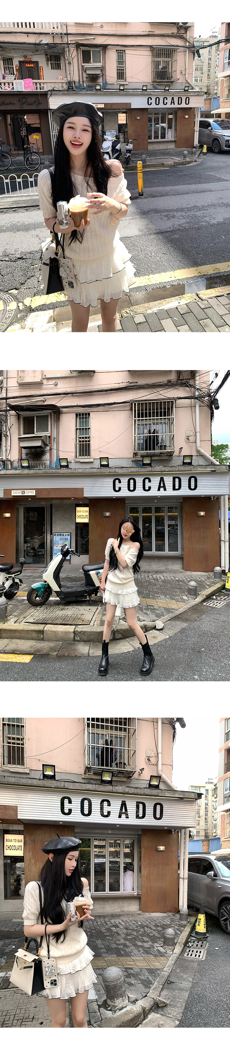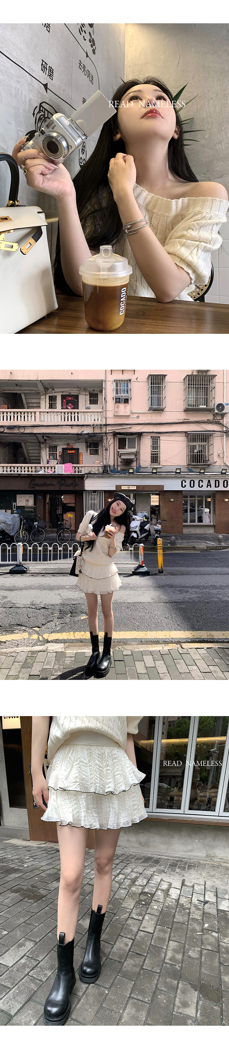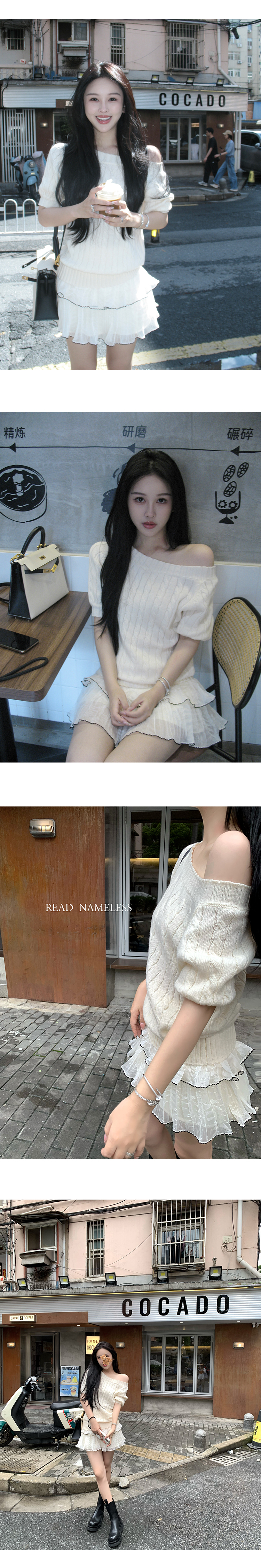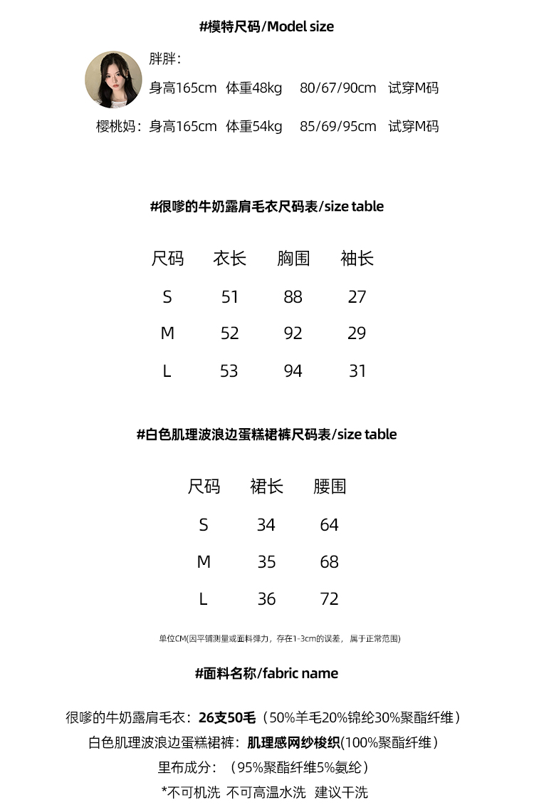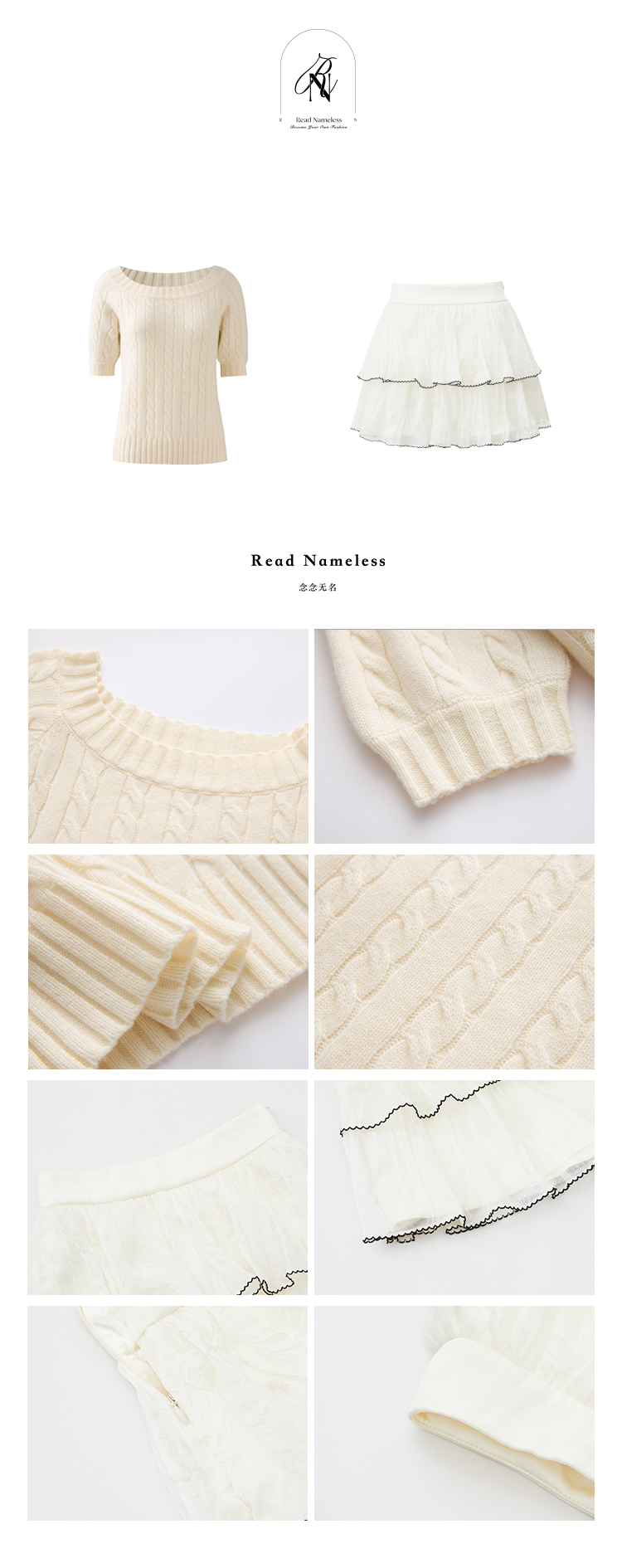 Read Nameless/很嗲的牛奶露肩毛衣+白色肌理波浪边蛋糕裙裤 2025/8/4