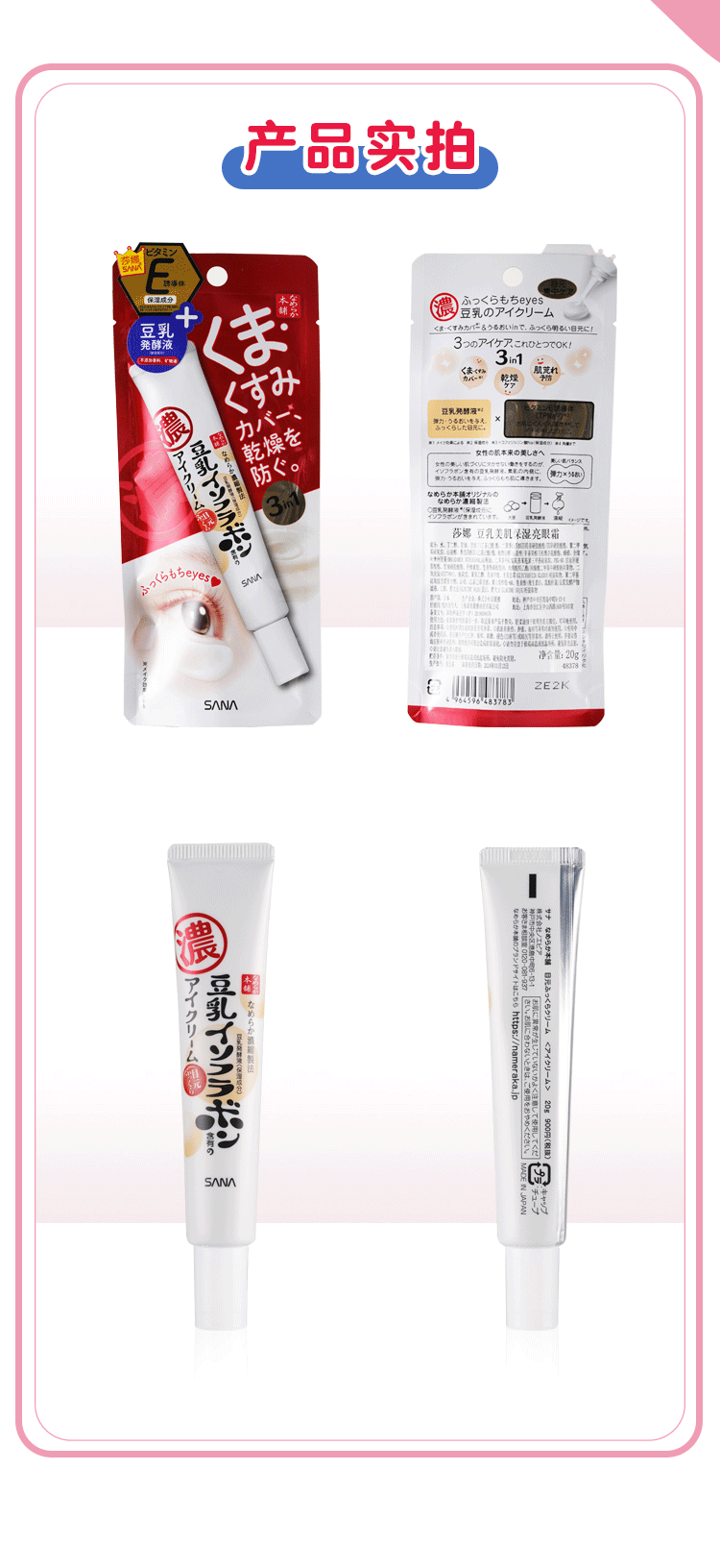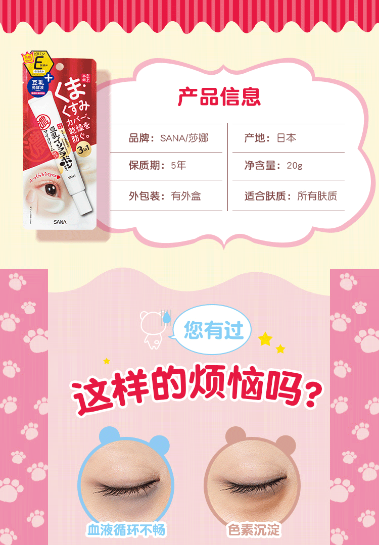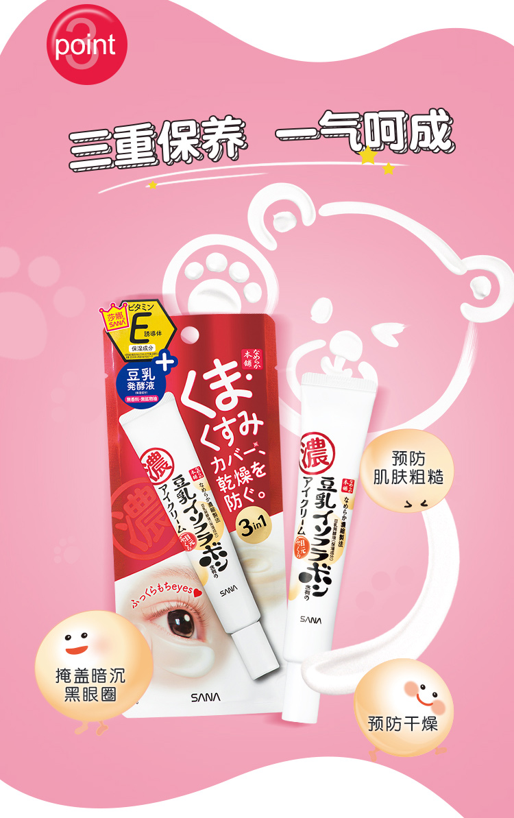 SANA莎娜豆乳美肌保湿亮眼霜20g去黑眼圈紧致提拉延缓初老