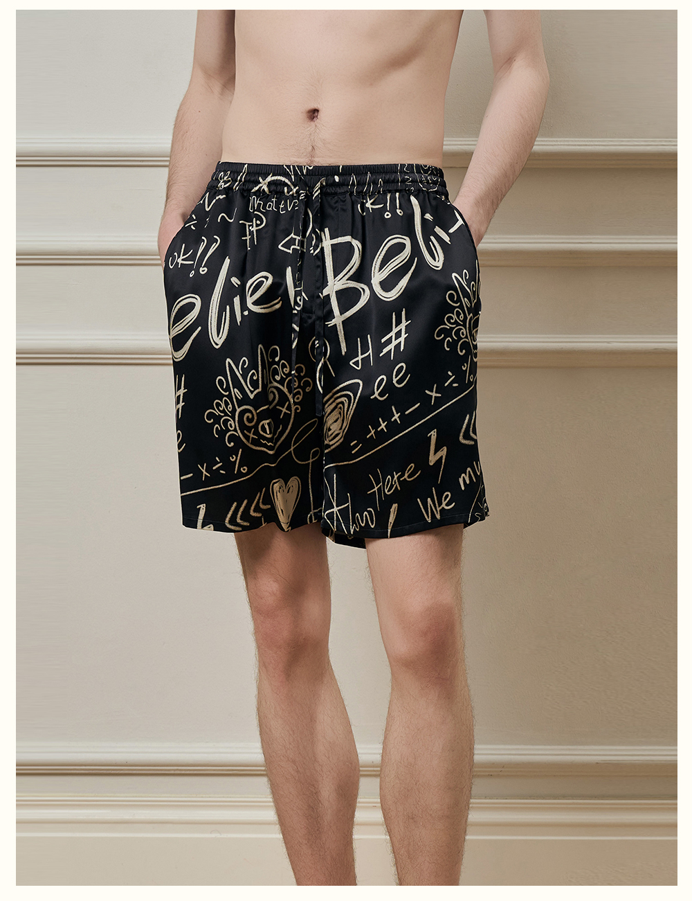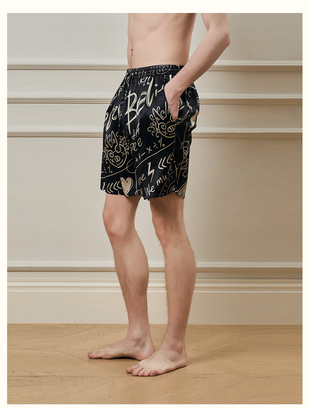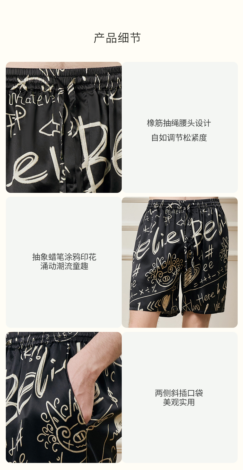 Solo seta22姆米重磅真丝男士印花睡裤桑蚕丝可外穿短裤2025年秋