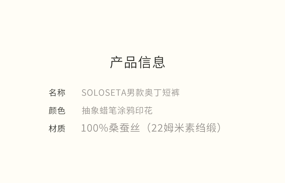 - soloseta专注于真丝织物,灵感源自意大利语,中文含义为“只做真丝”的意思。让睡衣变时尚,居家和外出瞬间切换,使其更具有出街,度假,参加宴会等功能。