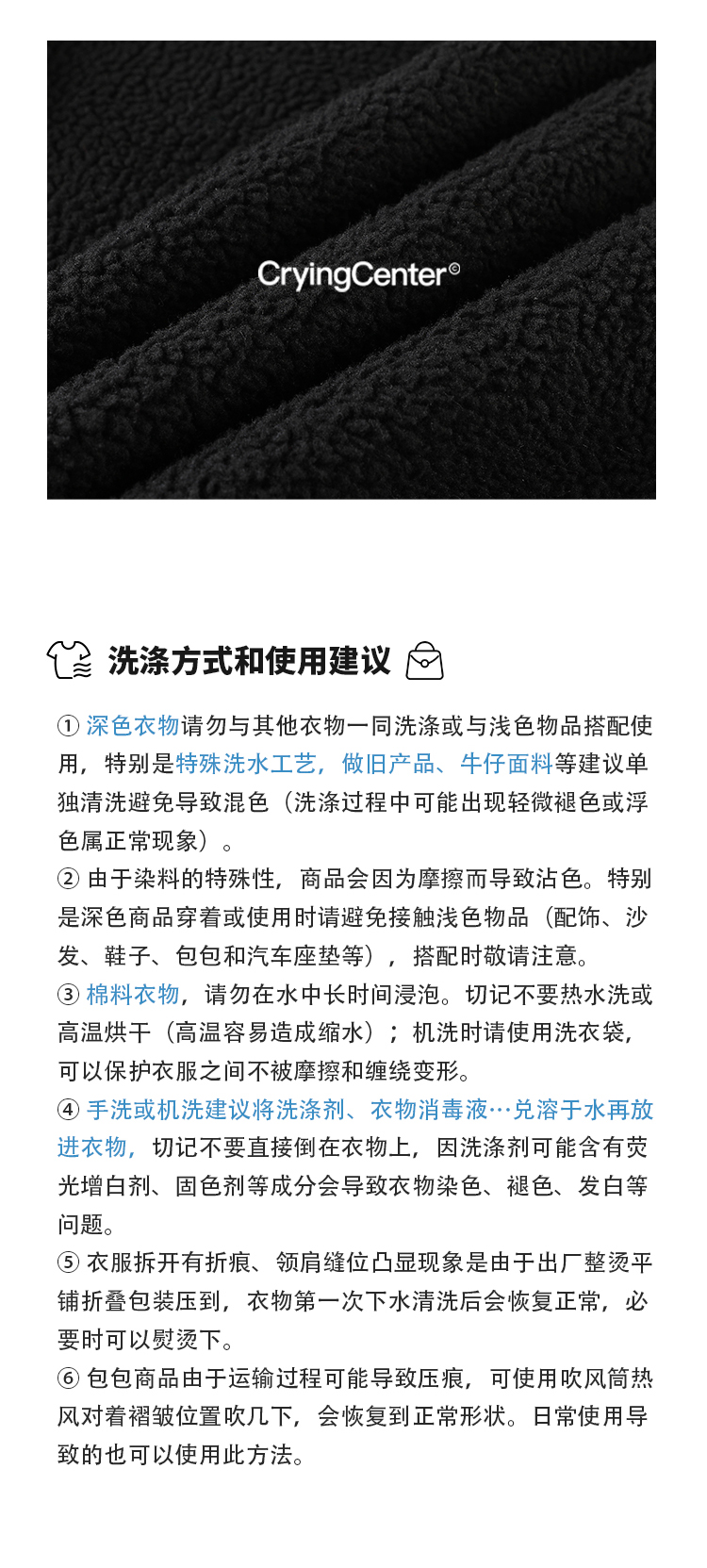 CryingCenter 黑色摇粒绒休闲长裤秋冬保暖通勤 哭喊中心
