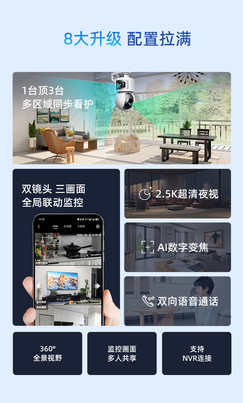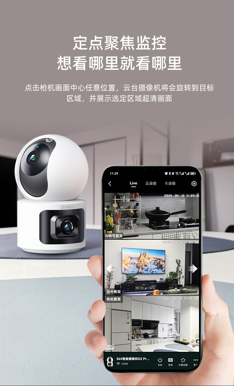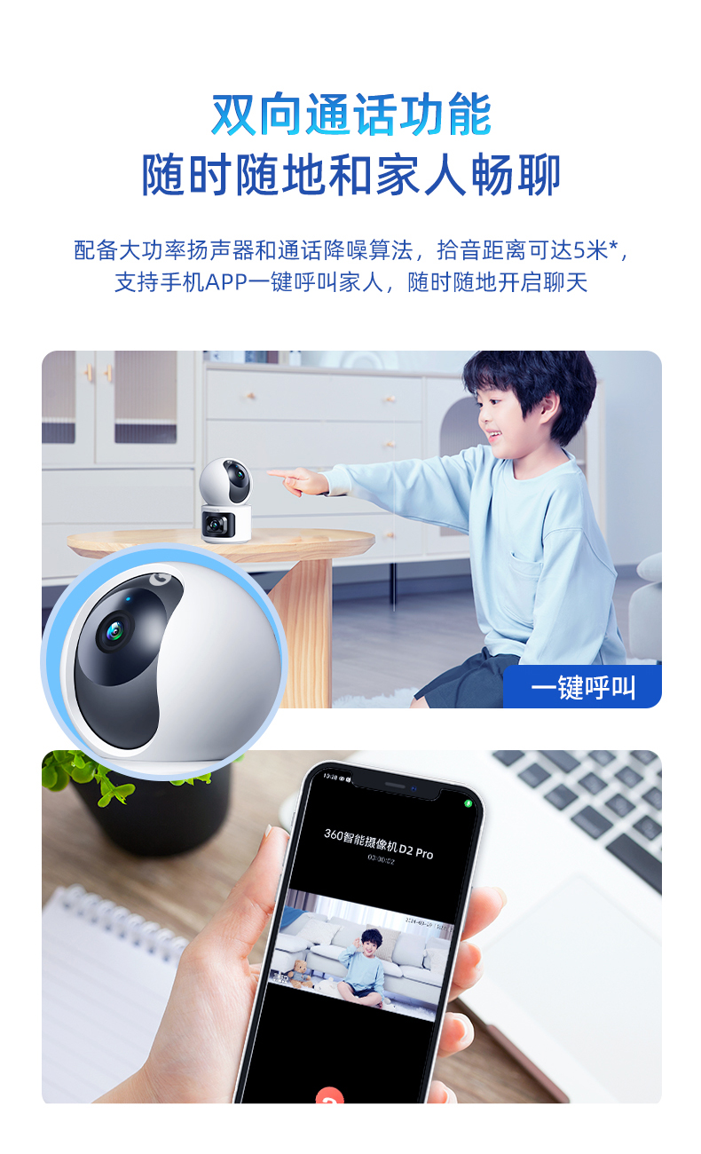 【套装】360智能摄像机D2Pro双摄2K++户外球机5C双摄3K