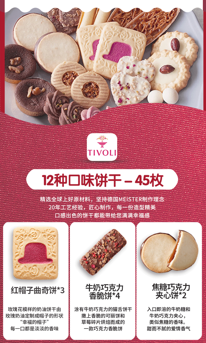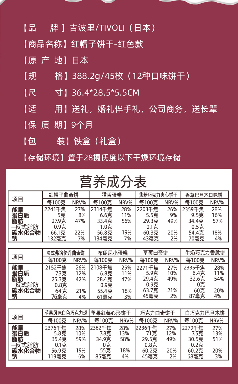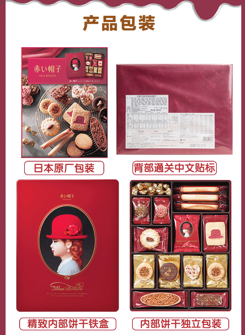 日本进口红帽子曲奇糕点什锦饼干红色礼盒388G