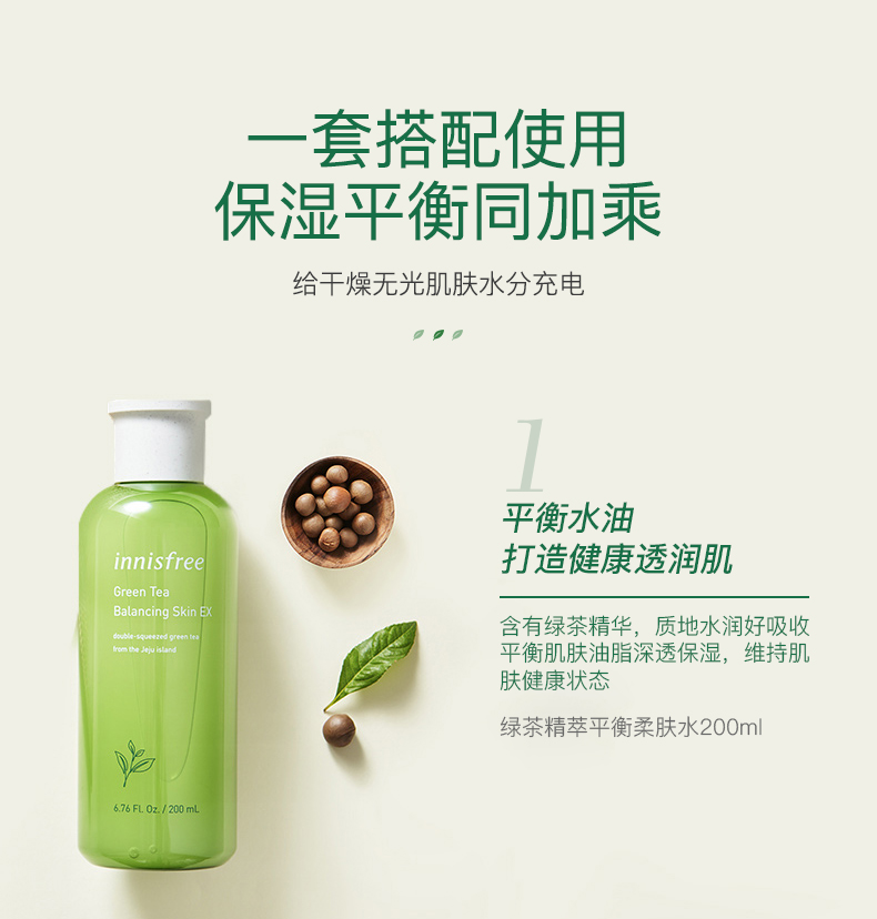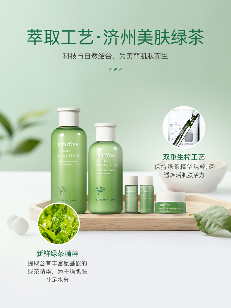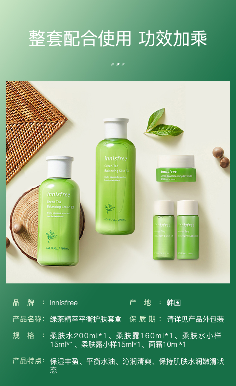 悦诗风吟 innisfree 绿茶精粹平衡保湿水乳套装礼盒 清爽滋润补水控油