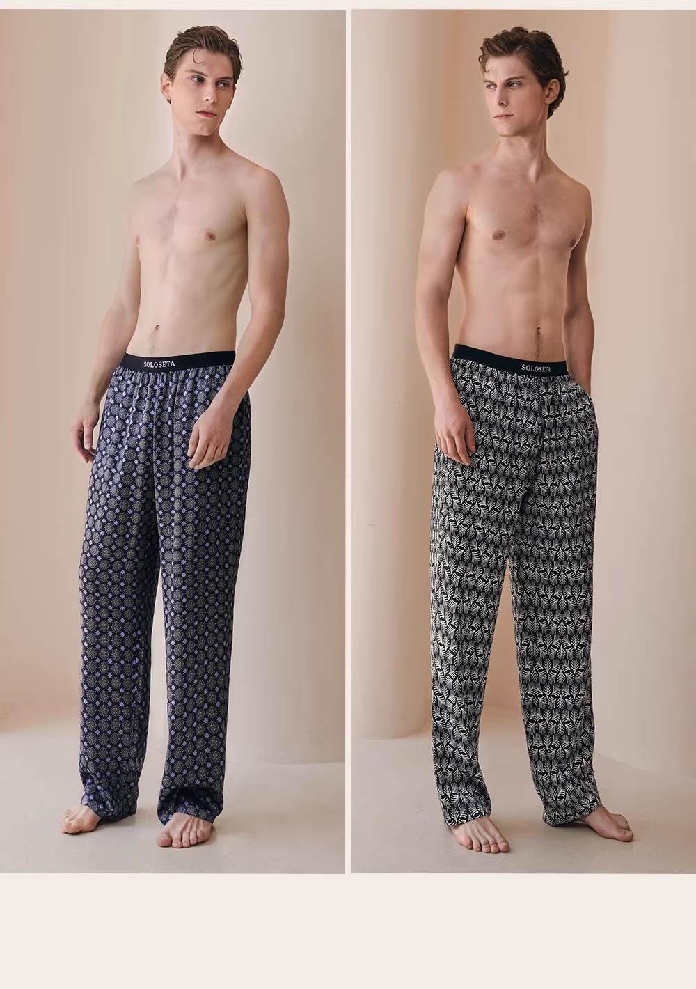 Solo seta22姆米男士真丝睡裤桑蚕丝印花可外穿长裤2025秋冬新款
