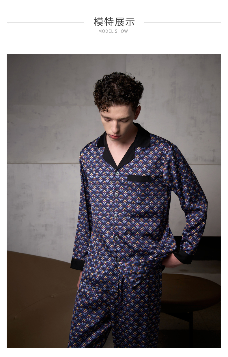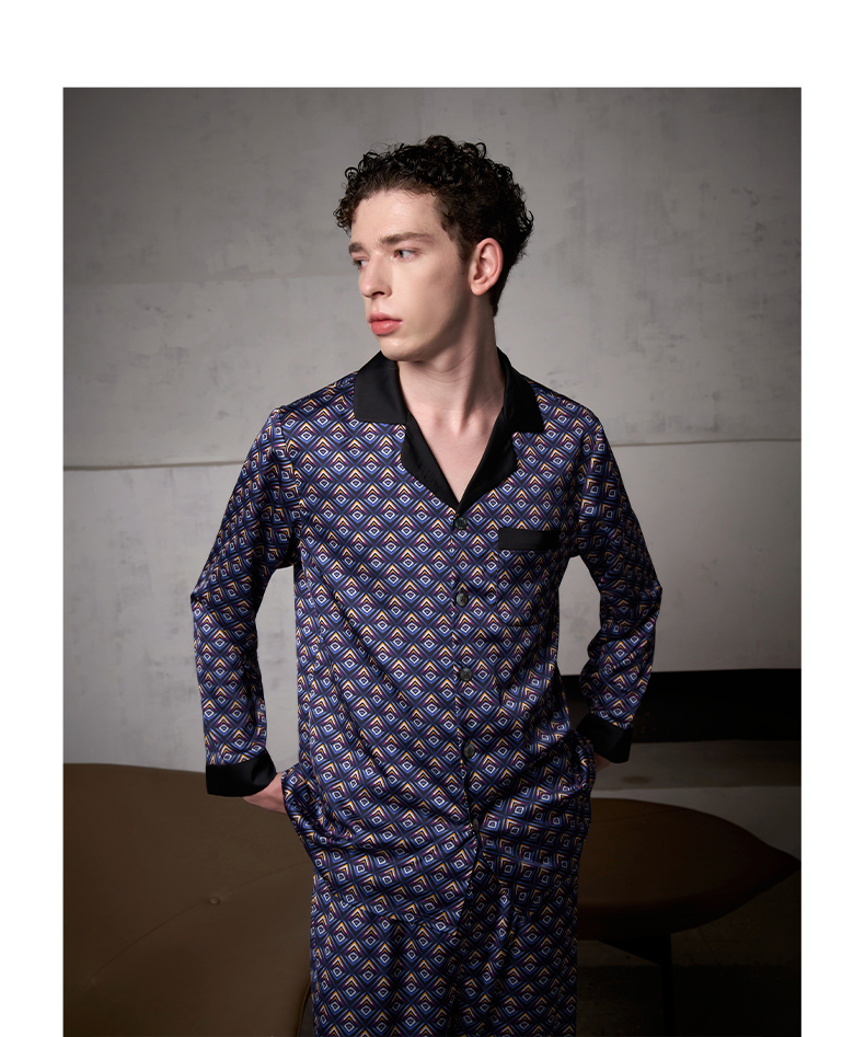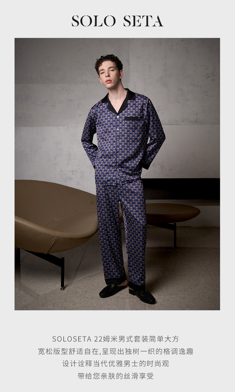 Solo seta22姆米重磅真丝睡衣套装男桑蚕丝家居服两件套秋冬