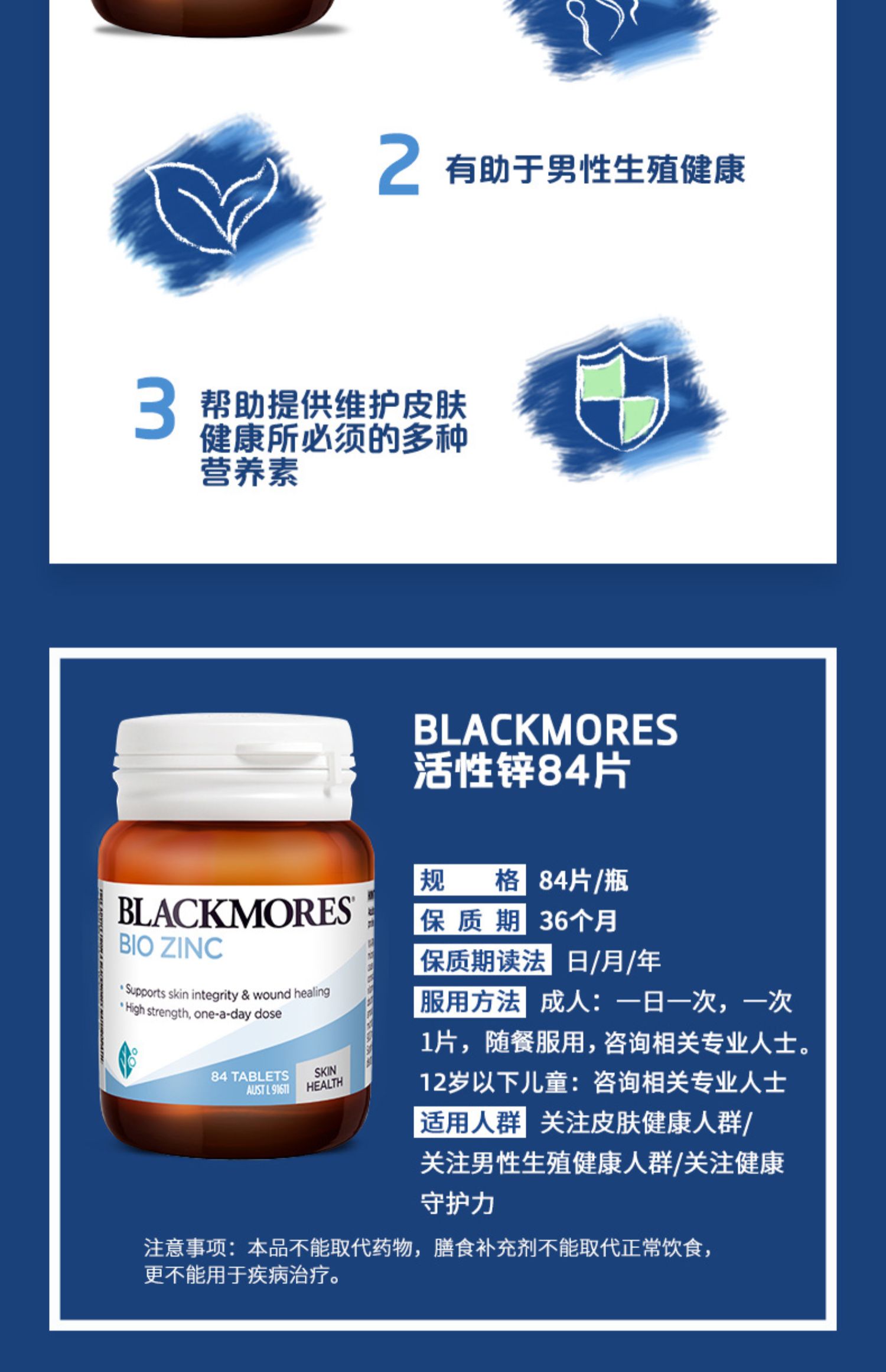 【保税仓】Blackmores活性锌84片