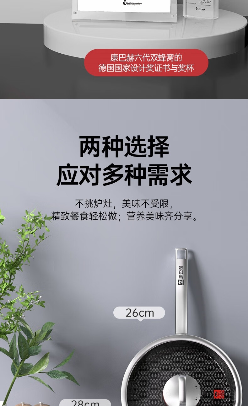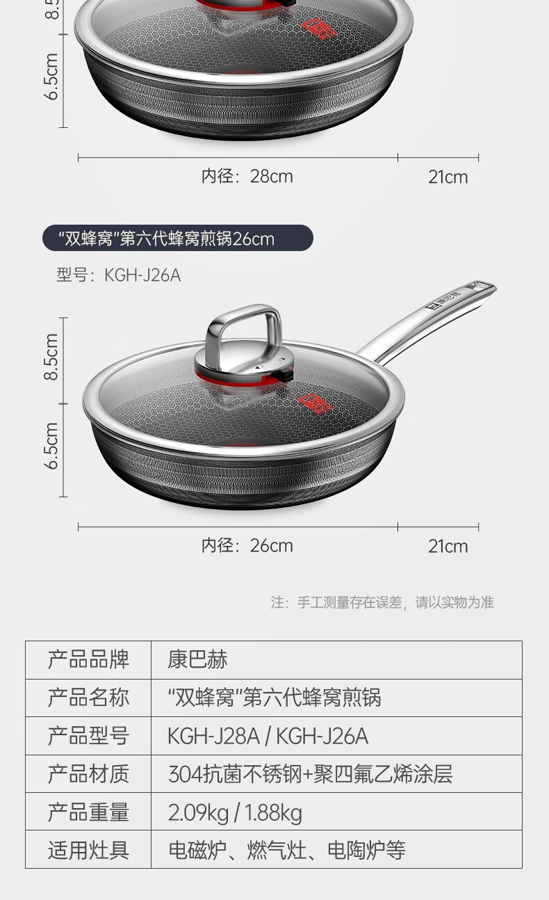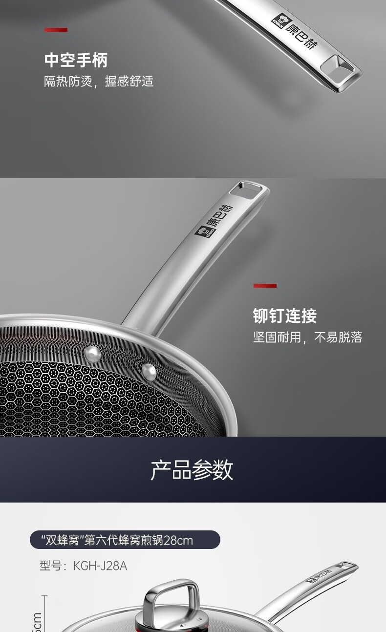 康巴赫(KBH)“双蜂窝”第六代红点感温蜂窝煎锅28cm KGH-J28A
