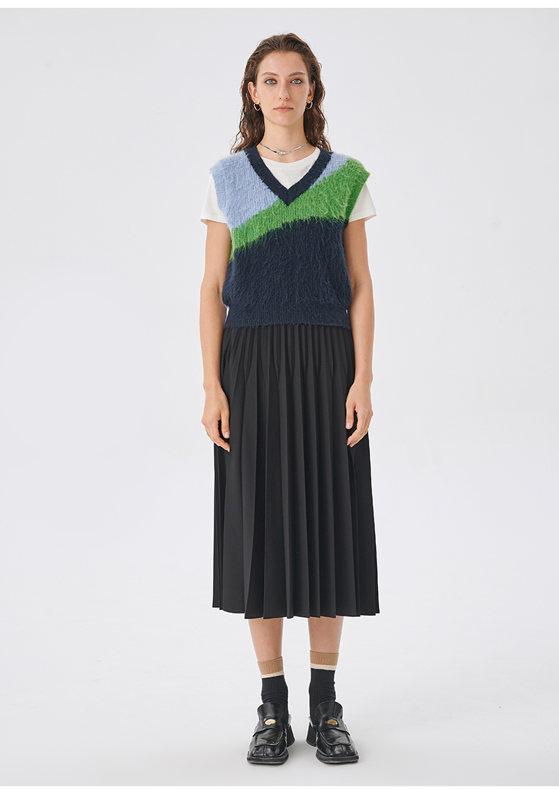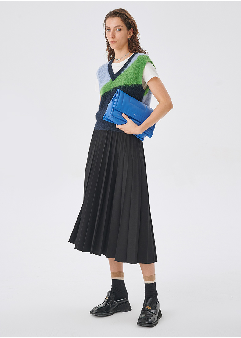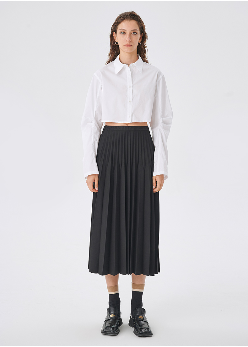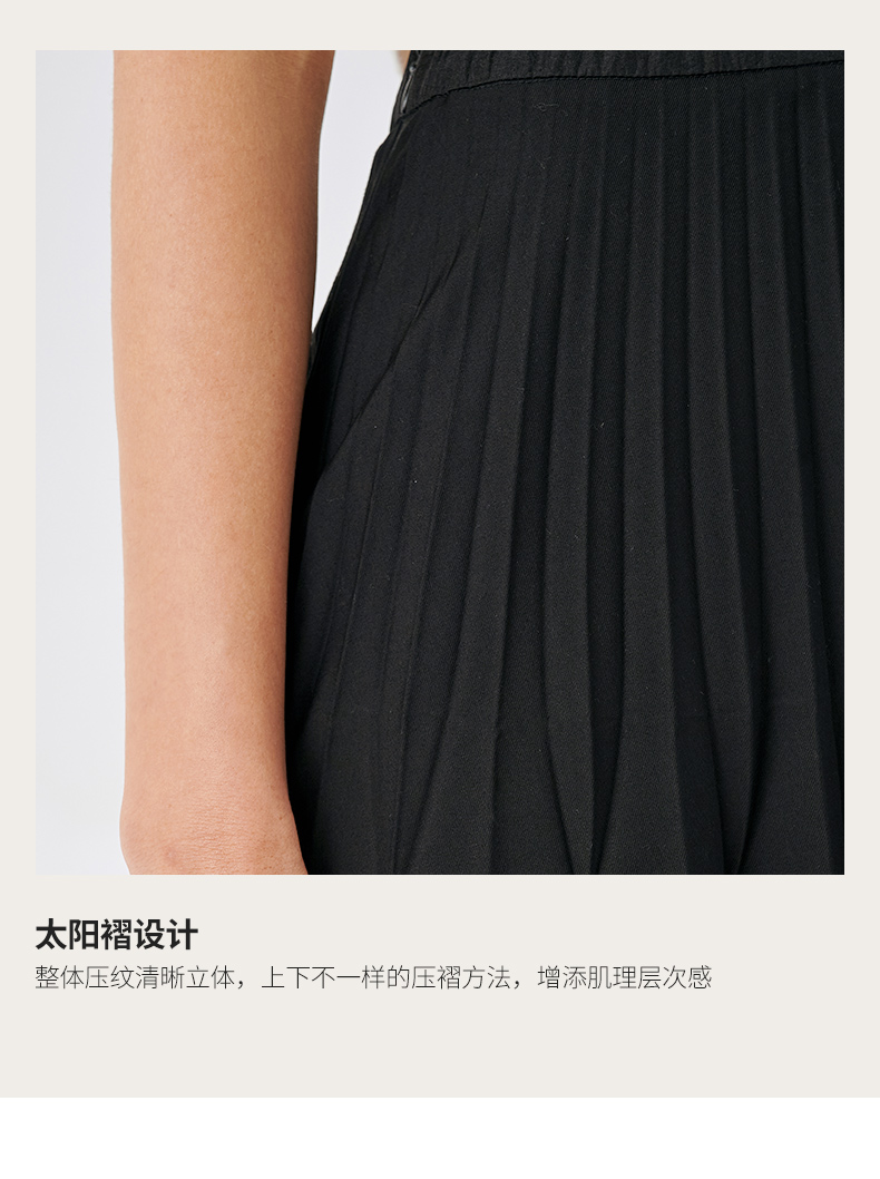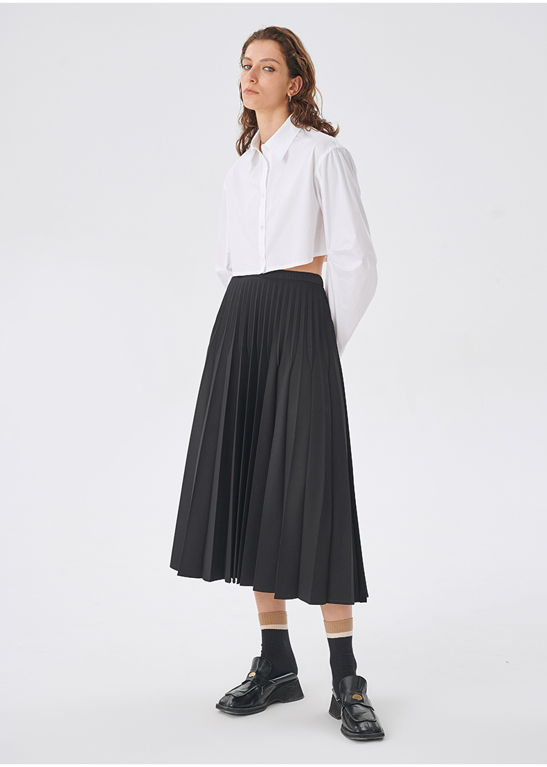 Self Who2023春季新品松紧一字腰百褶半身裙不规则垂坠感a字裙子