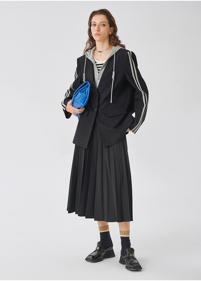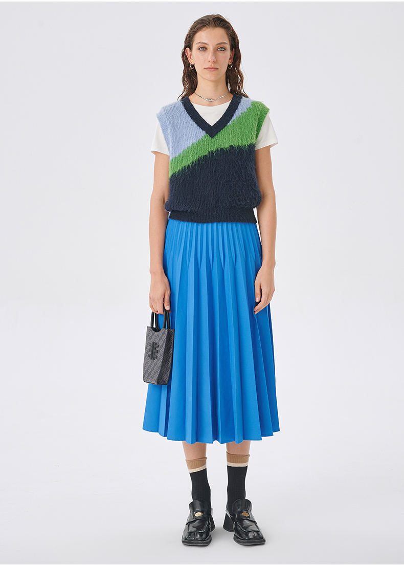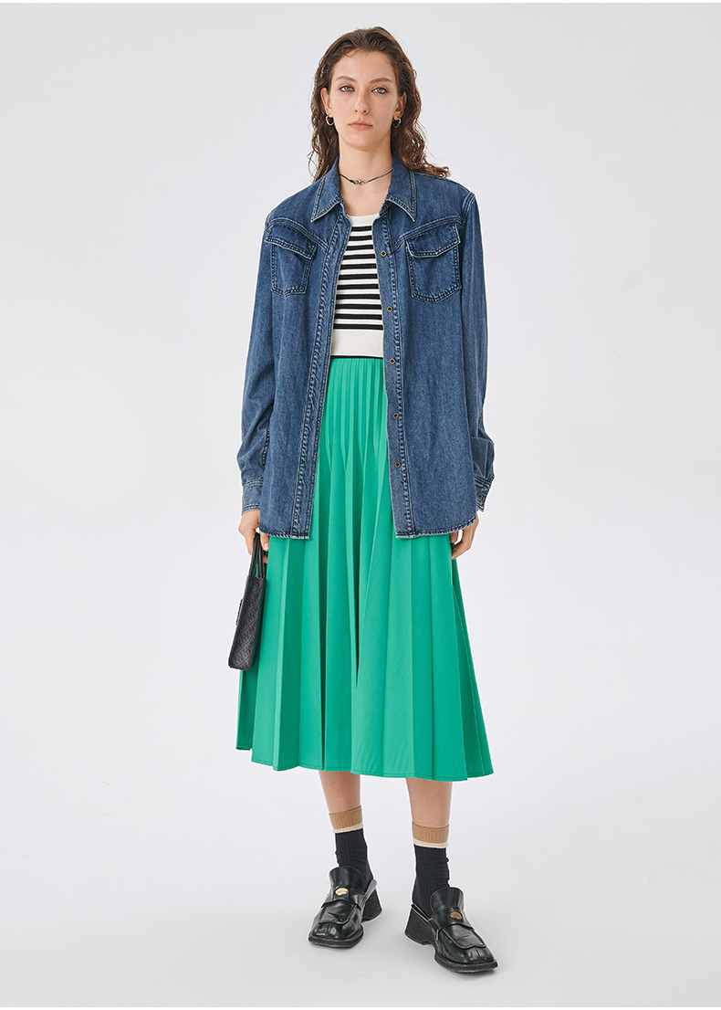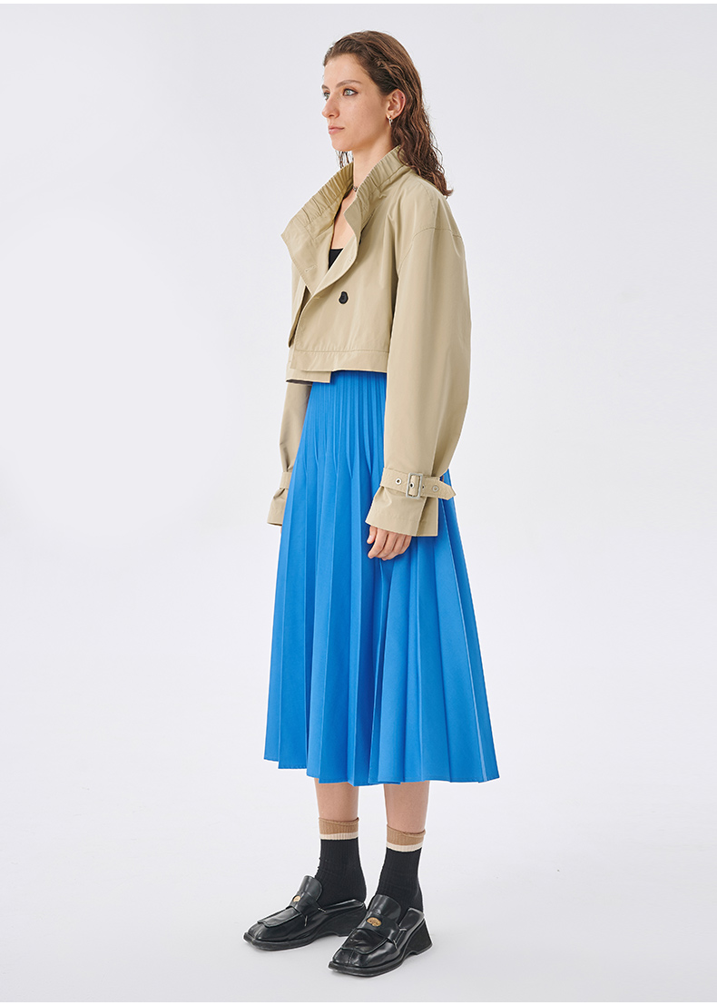 Self Who2023春季新品松紧一字腰百褶半身裙不规则垂坠感a字裙子