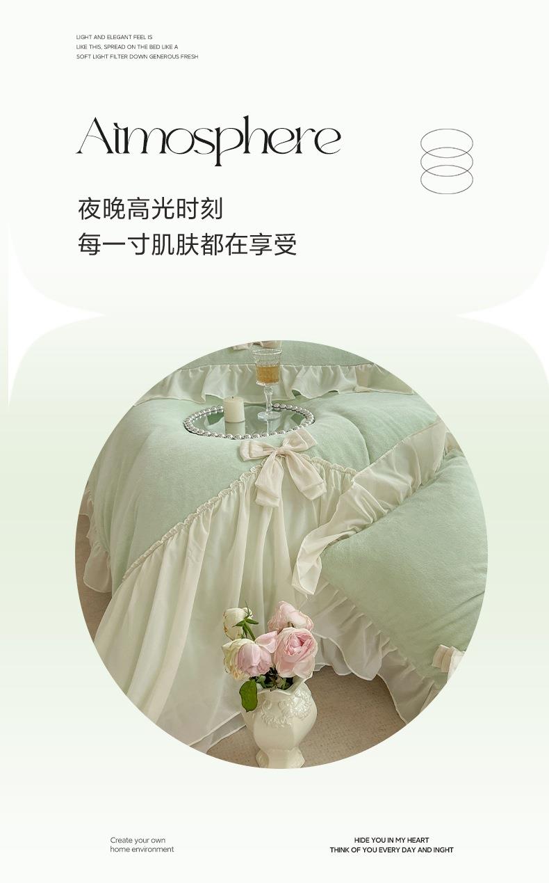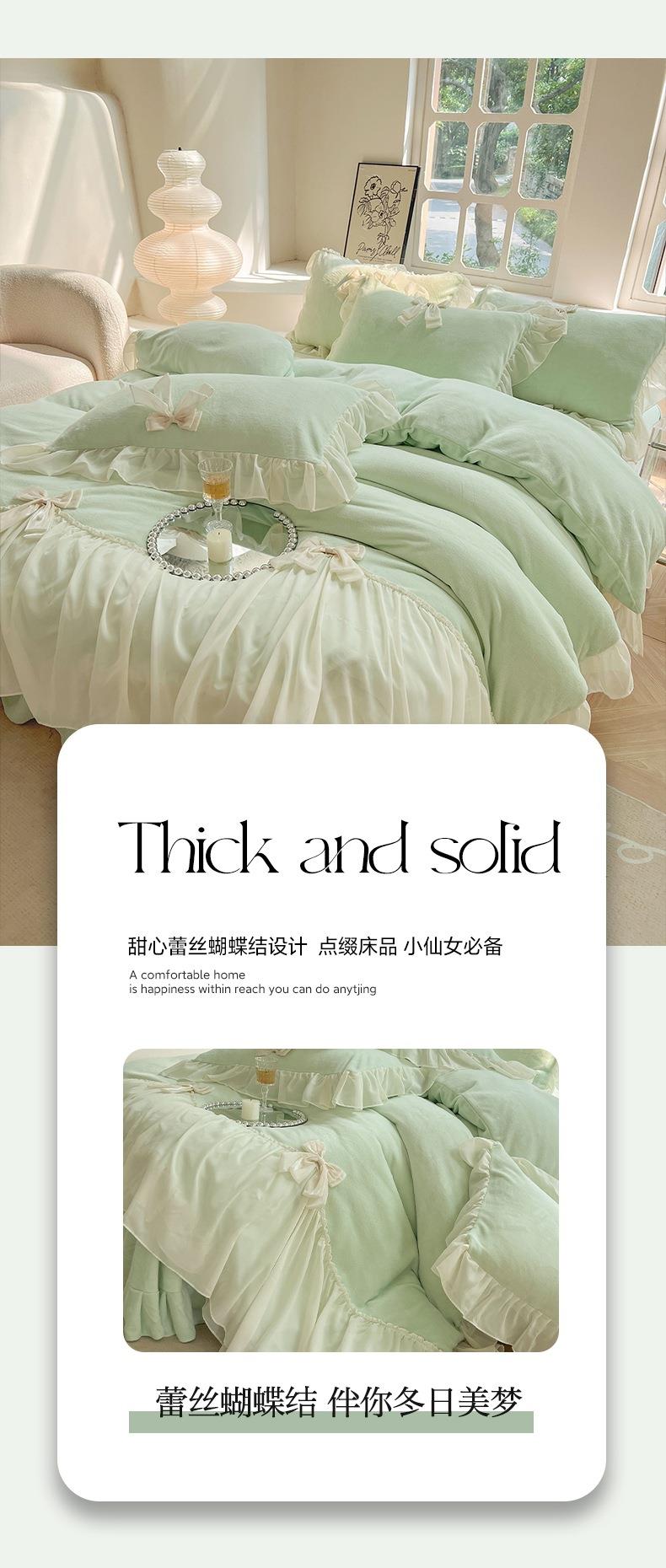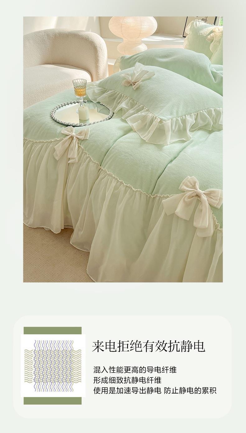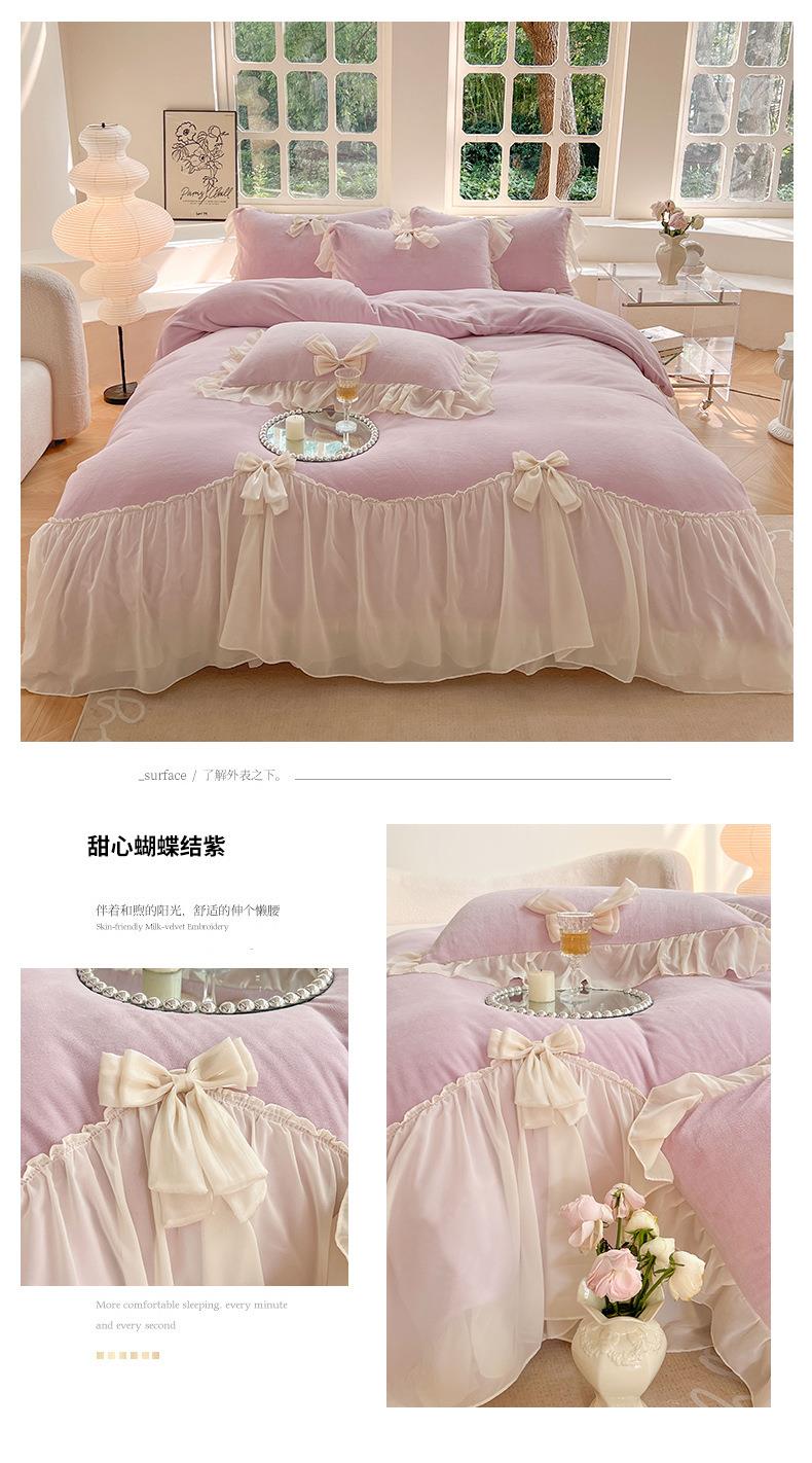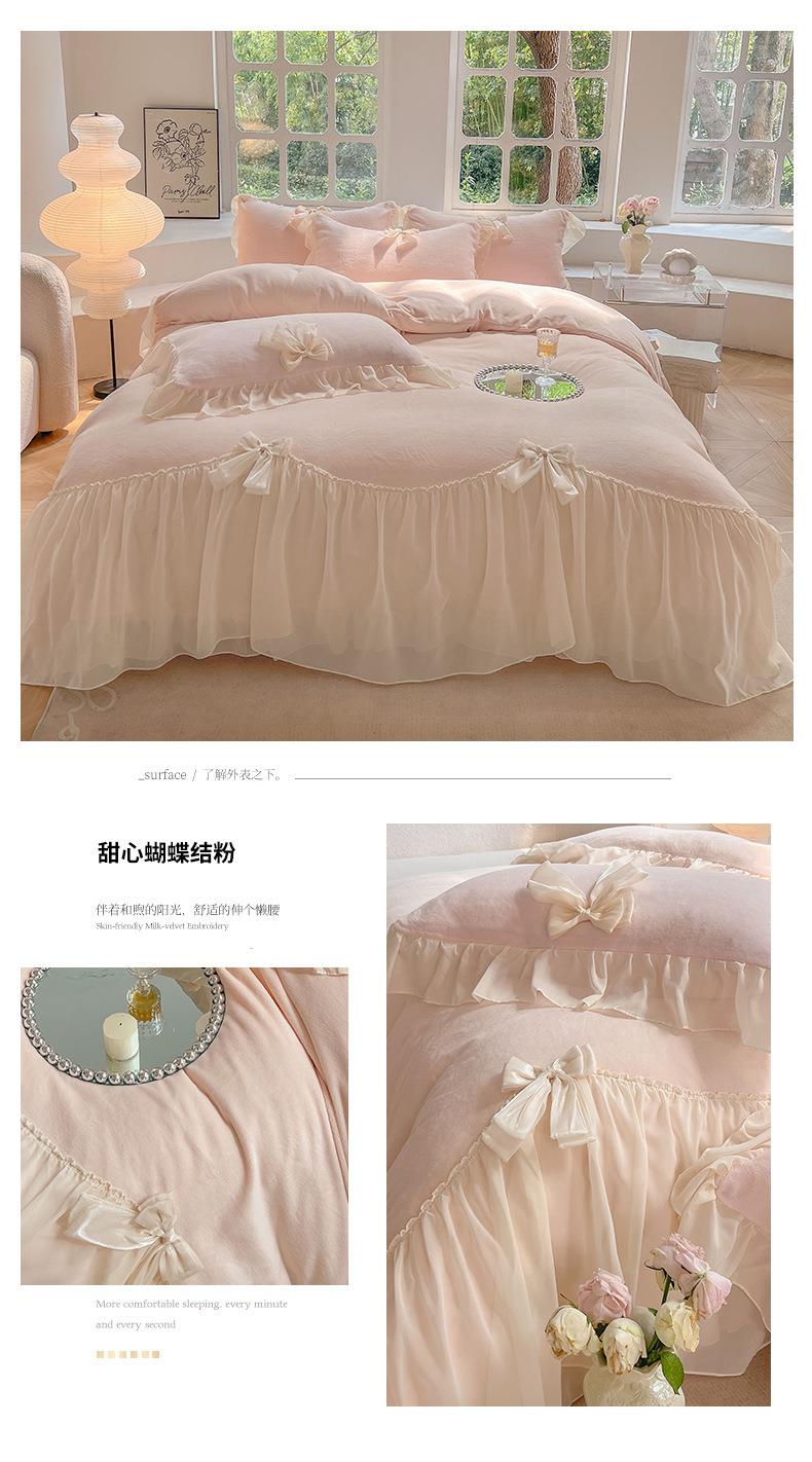 【牛奶绒床裙仙女粉色加绒加厚四件套】冬季法式仙女粉色加绒加厚四件套公主风毛绒被套珊瑚