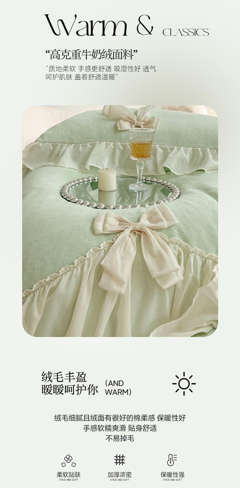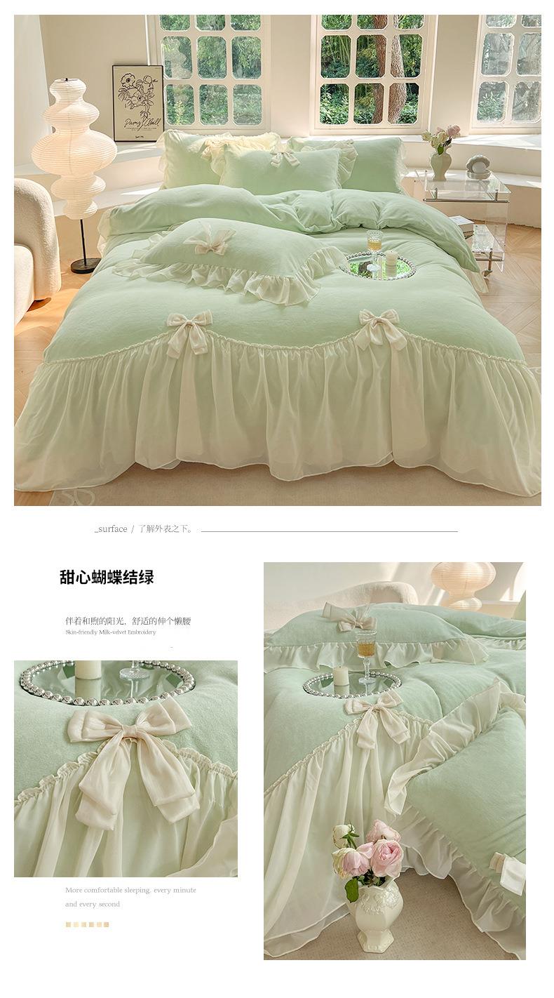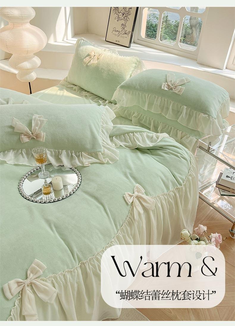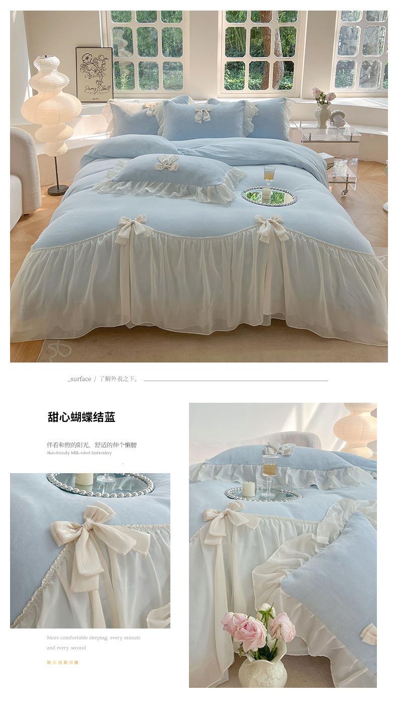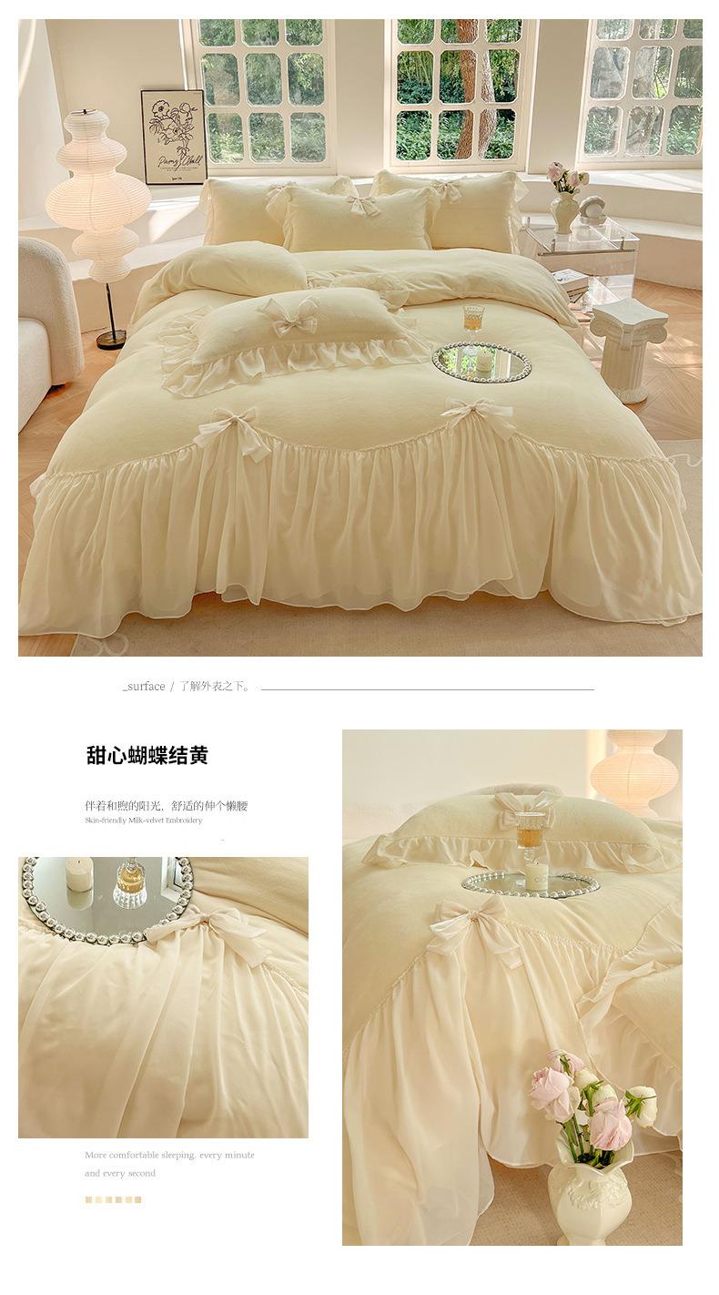 【牛奶绒床裙仙女粉色加绒加厚四件套】冬季法式仙女粉色加绒加厚四件套公主风毛绒被套珊瑚