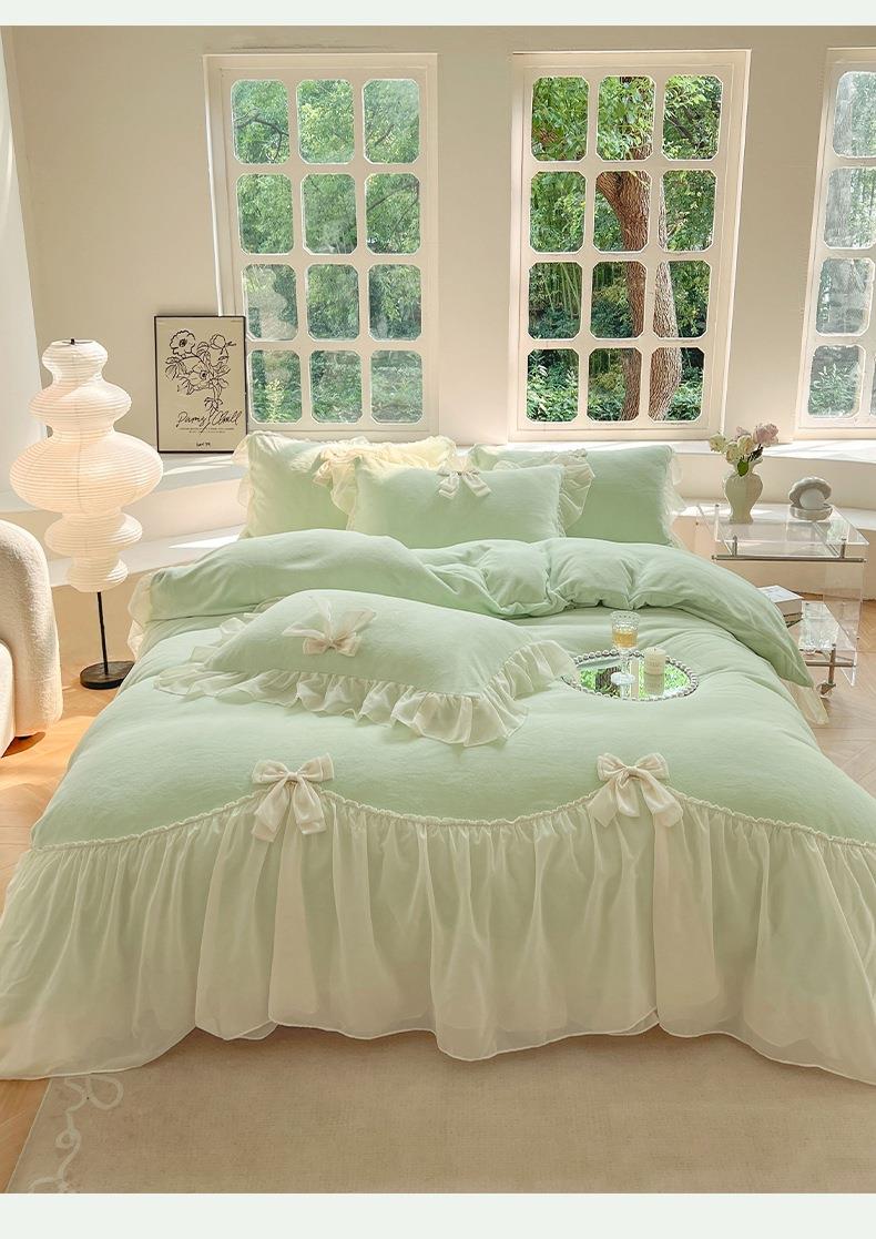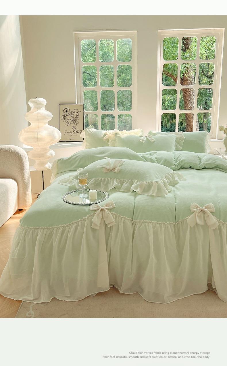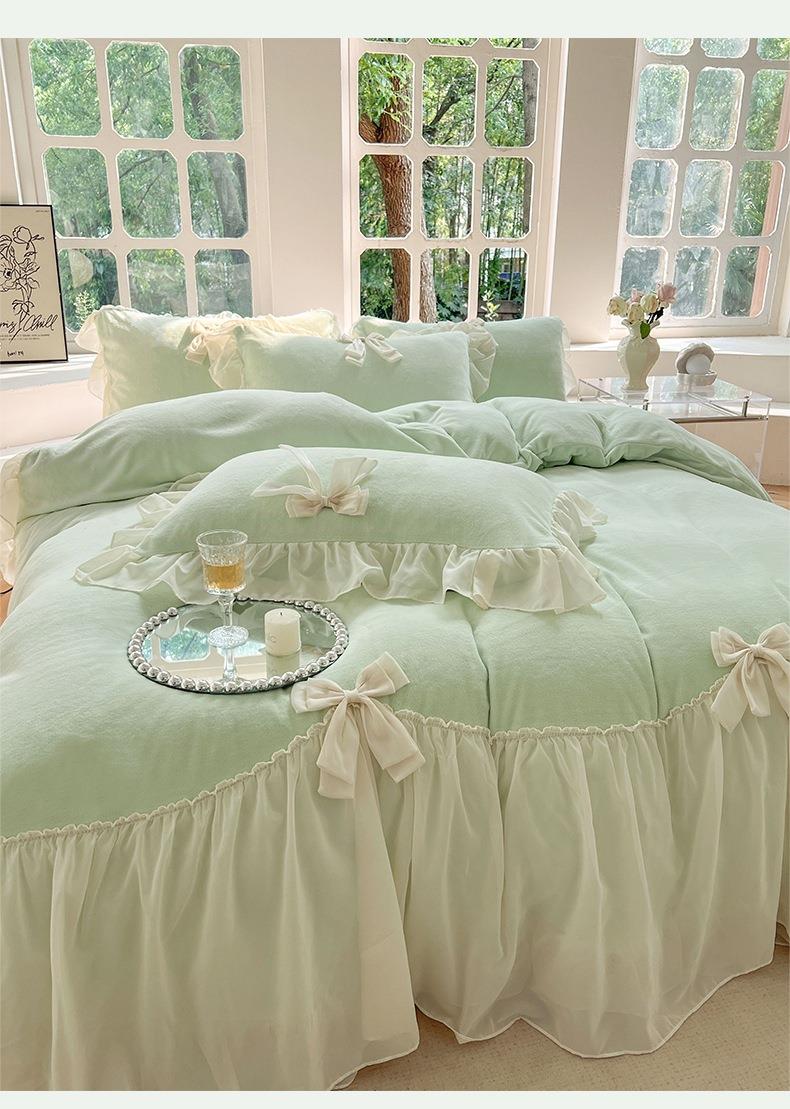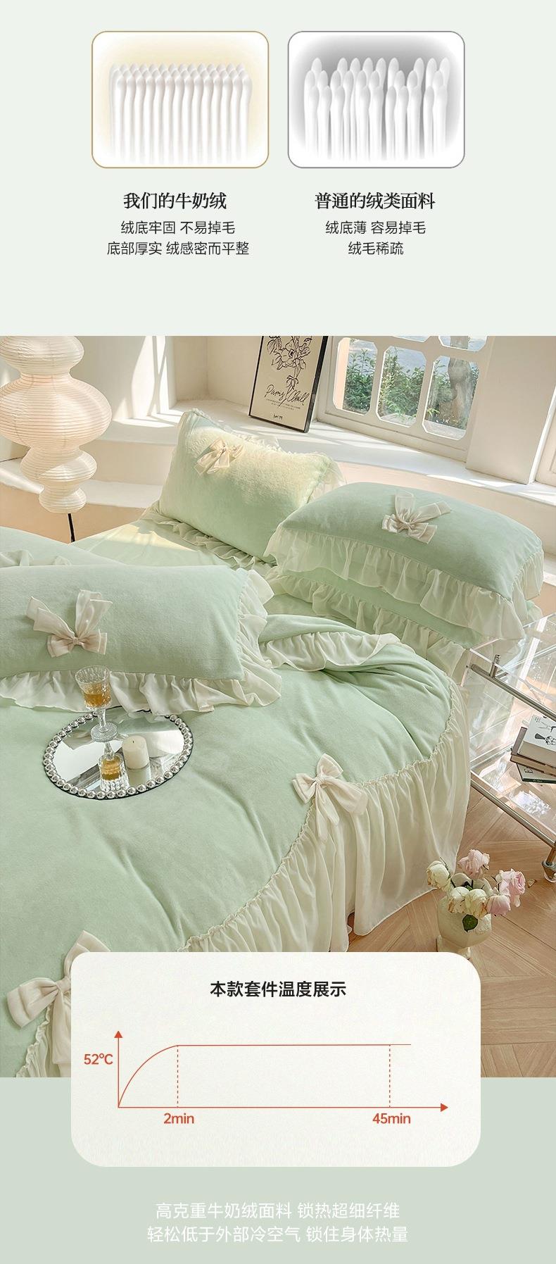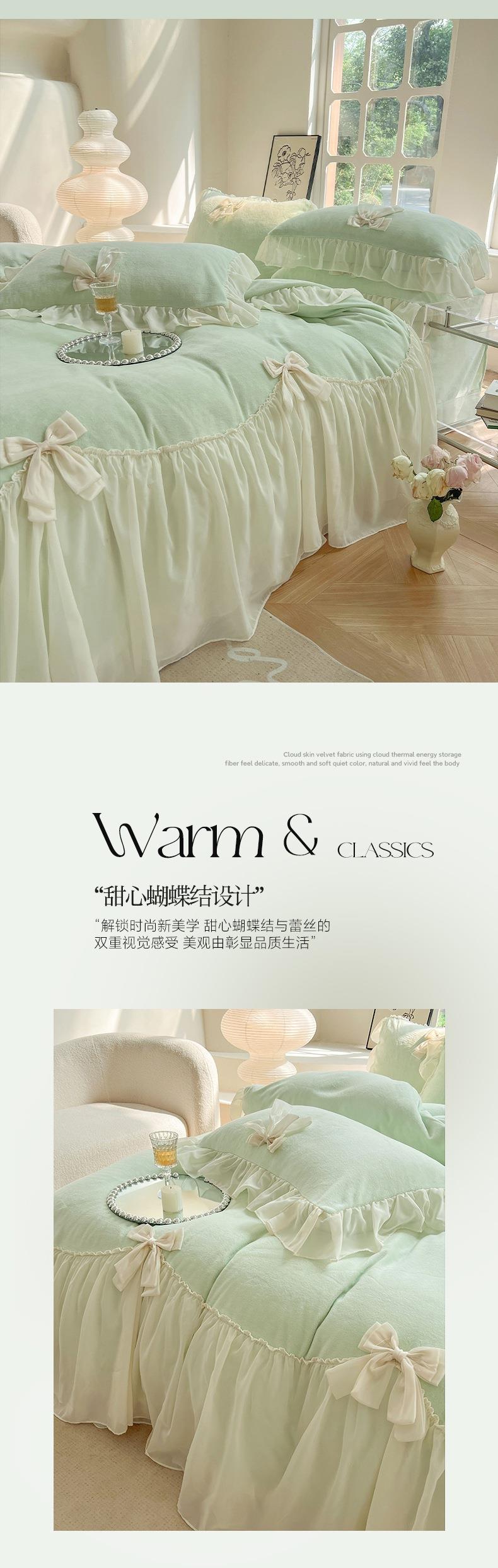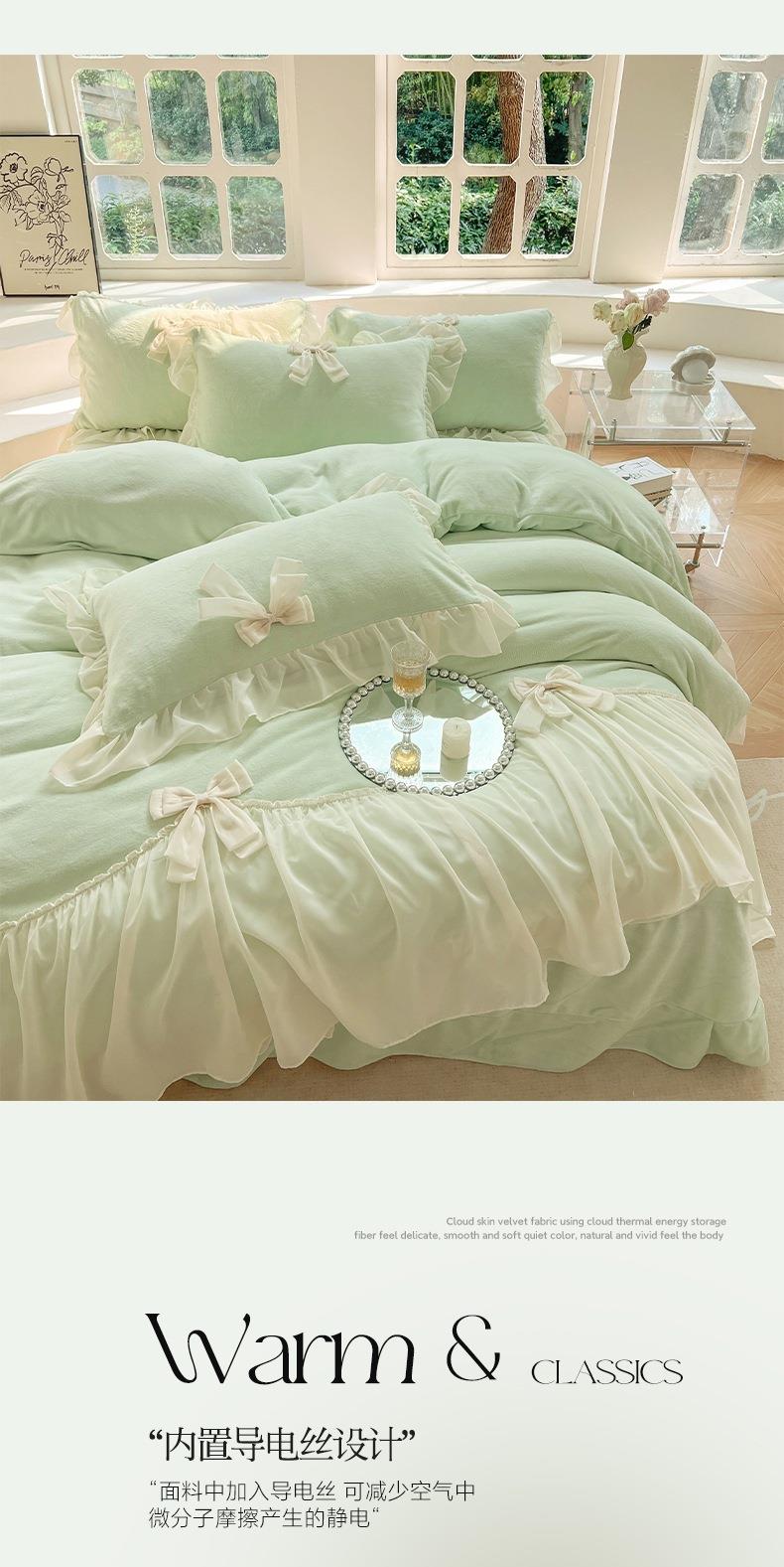 【牛奶绒床裙仙女粉色加绒加厚四件套】冬季法式仙女粉色加绒加厚四件套公主风毛绒被套珊瑚