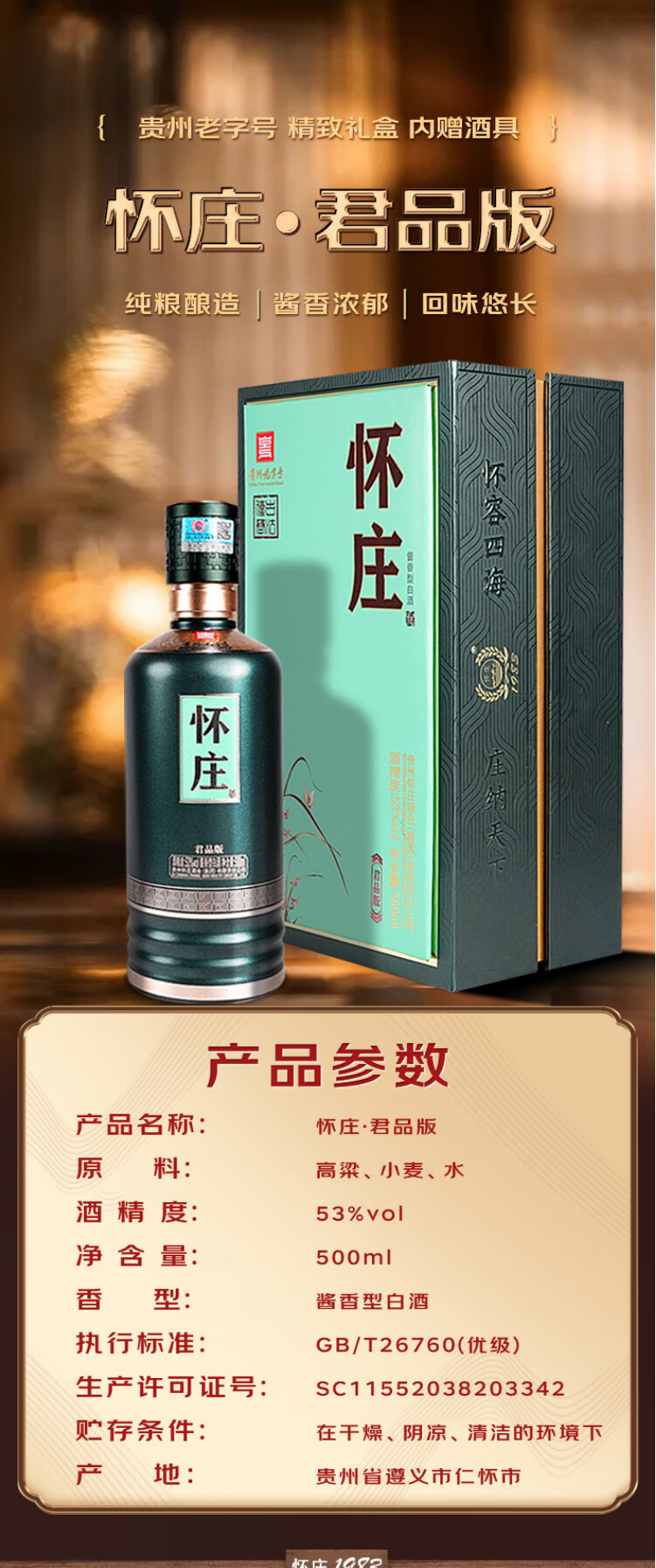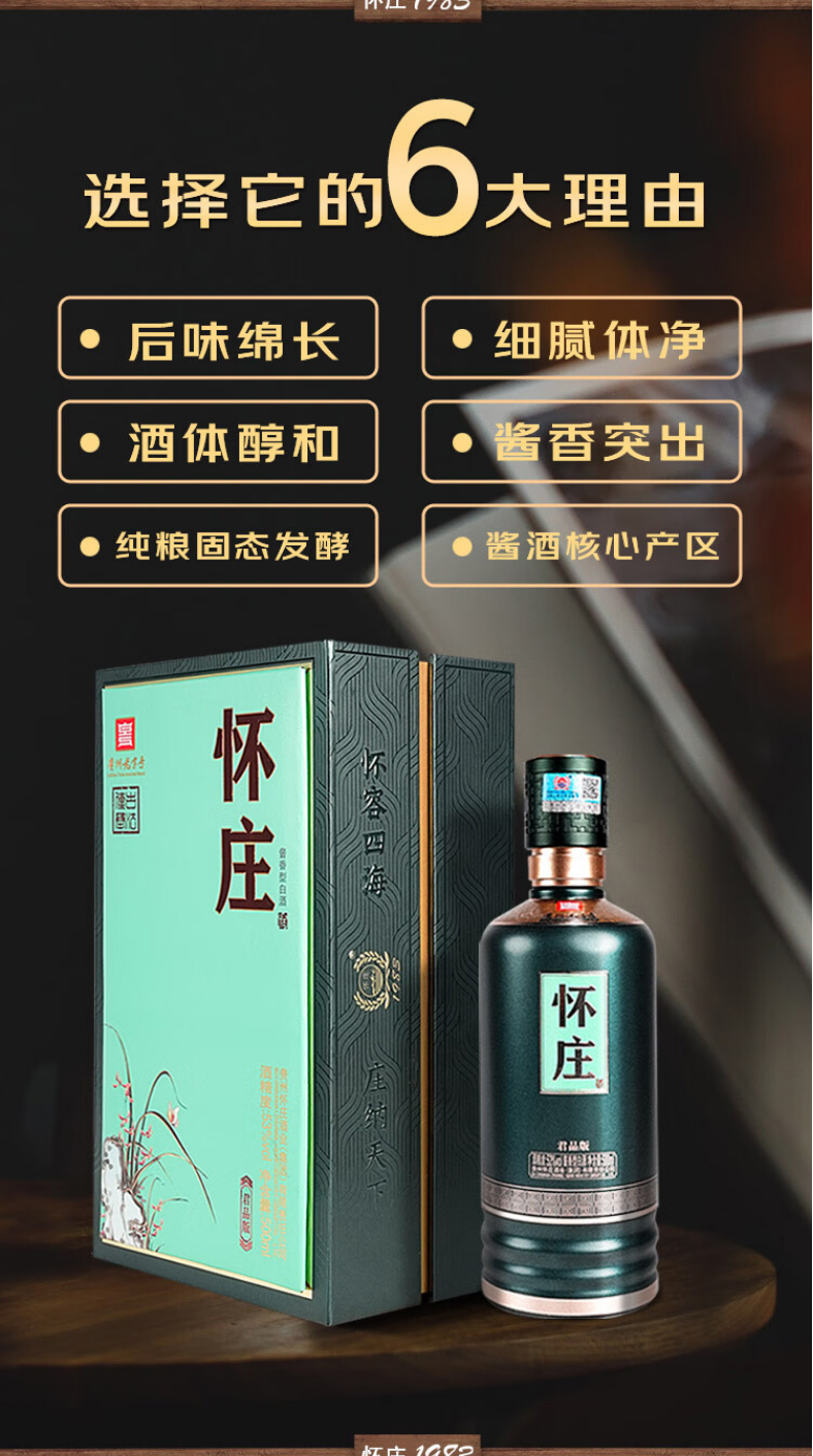 【亲民口粮酒】怀庄1983 君品版 酱香型白酒 53度 500mL 单瓶