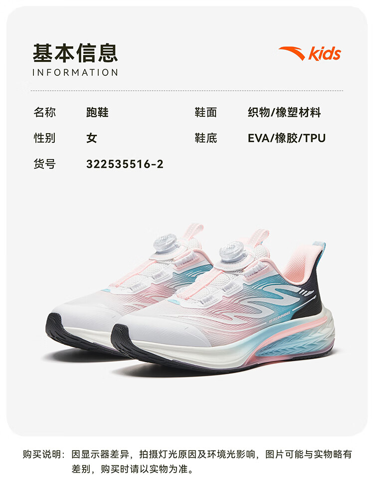 安踏儿童运动鞋女大童跑鞋2025秋季骇浪3.0跑步鞋322535516
