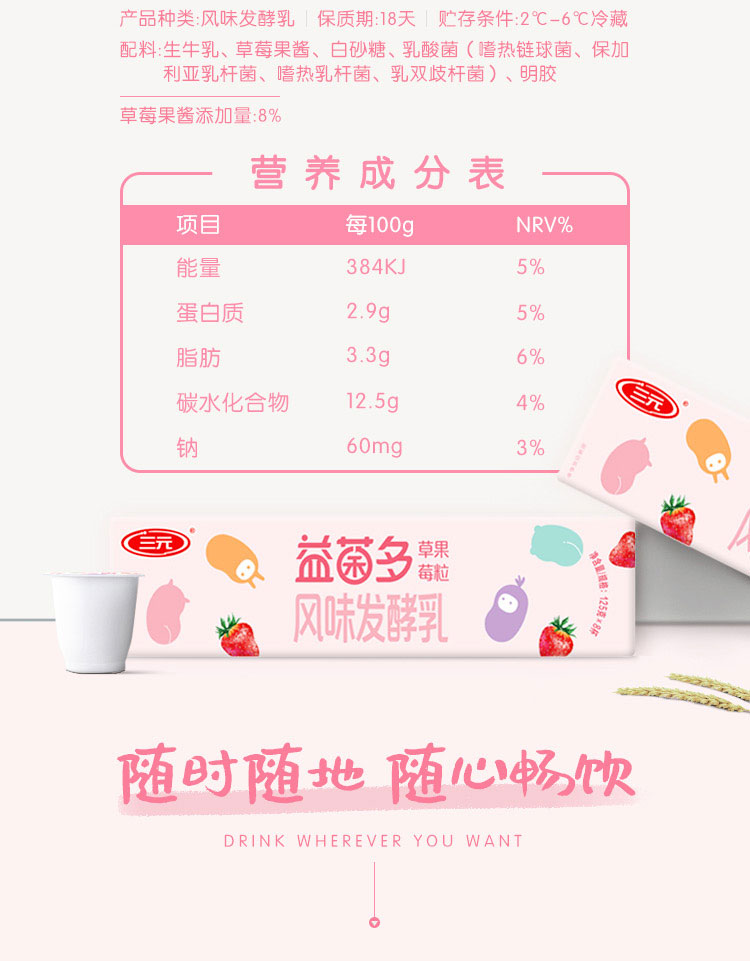 【自提-低温】益菌多草莓果粒风味发酵乳125g*8