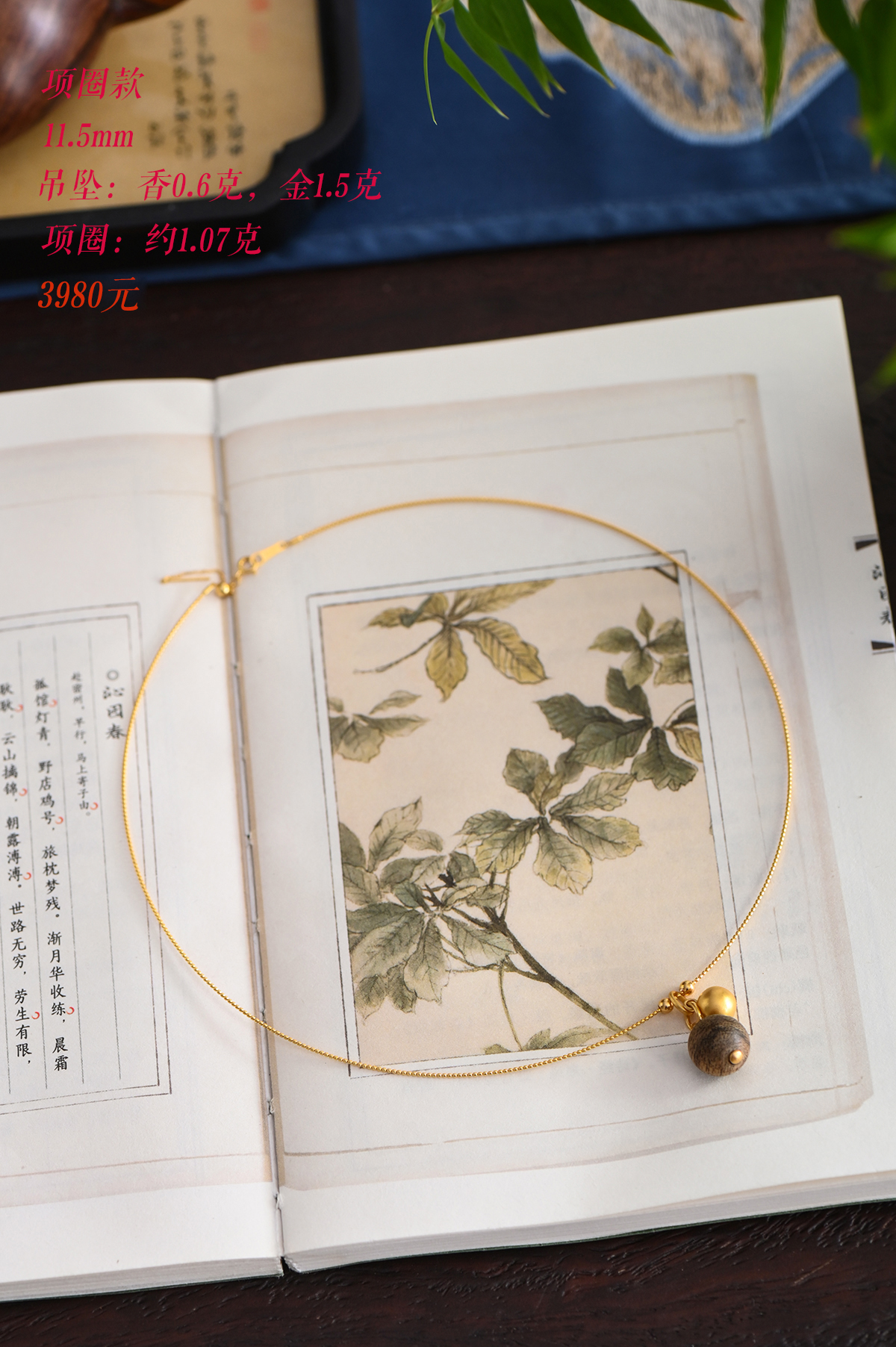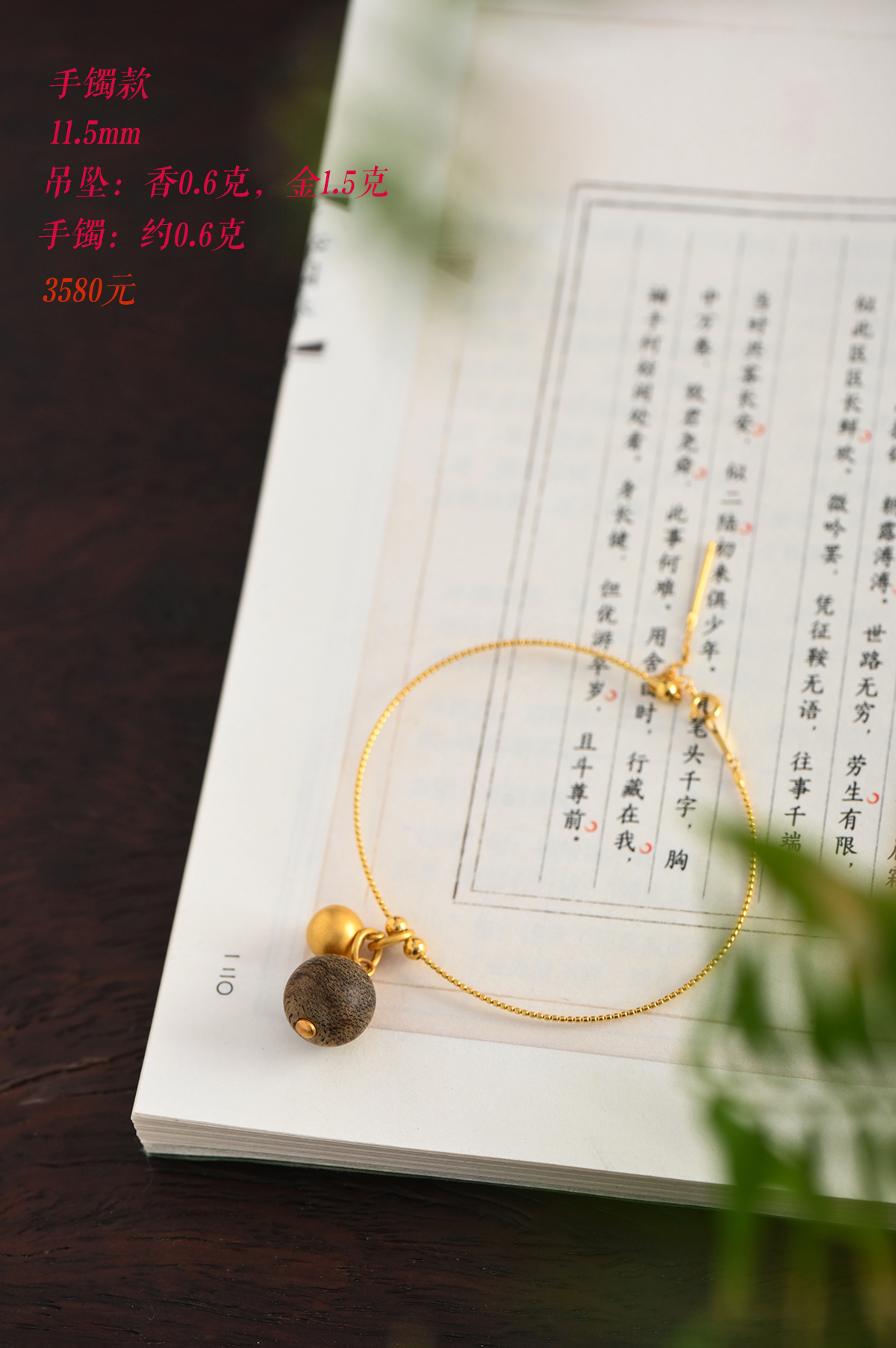简约,而不简单丨天然文莱沉香包金吊坠/手镯/项圈饰品 九分沉 SP10304