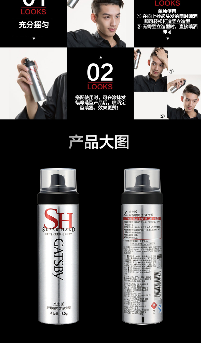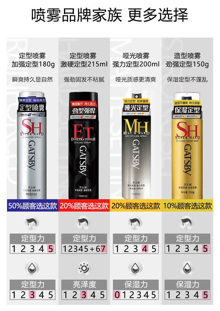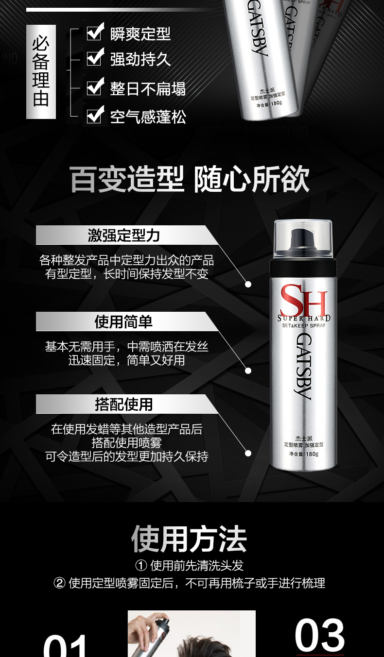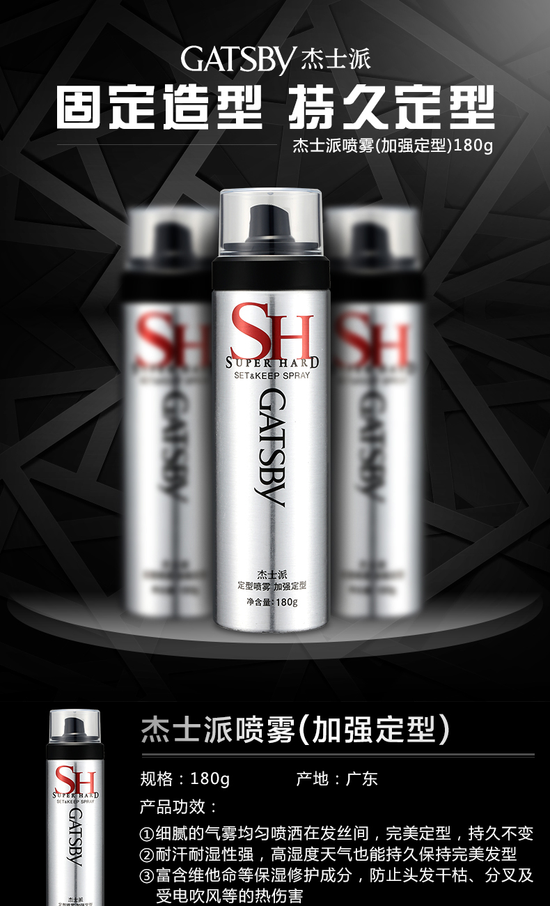gatsby杰士派发胶定型喷雾头发喷雾定型男士干胶持久自然蓬松女180g