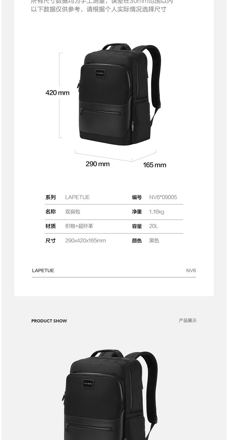 新秀丽 大容量休闲双肩包 NV6-09005 黑色
