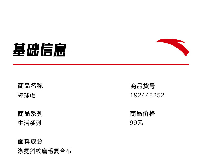 安踏棒球帽简约复古潮流时尚简约休闲运动防晒遮阳鸭舌帽子192448252
